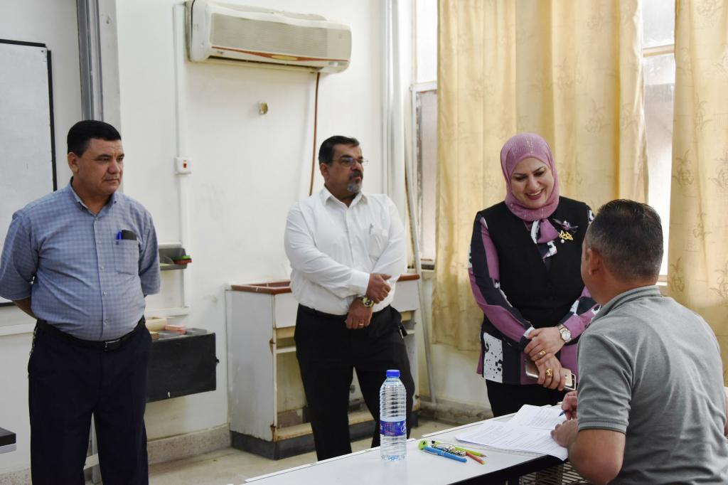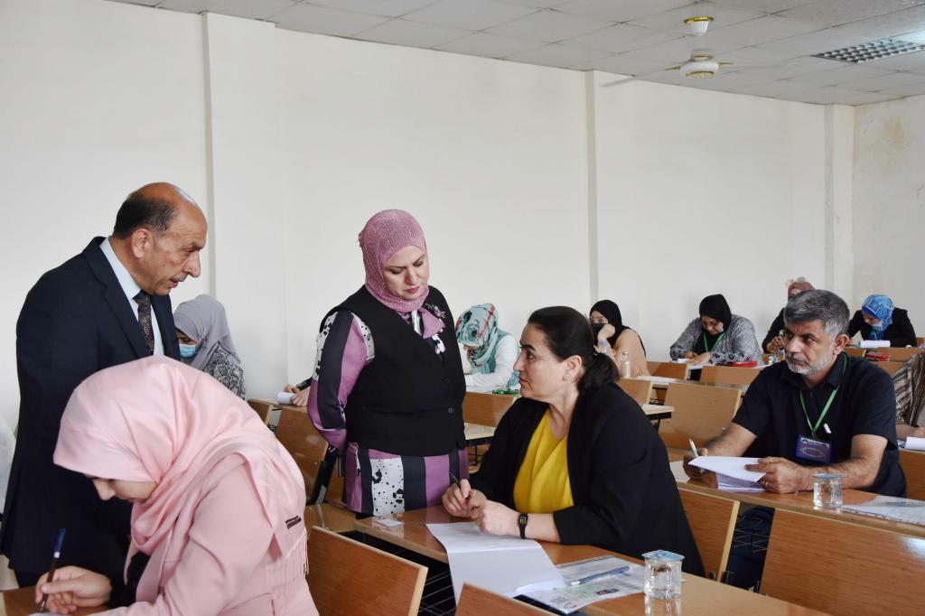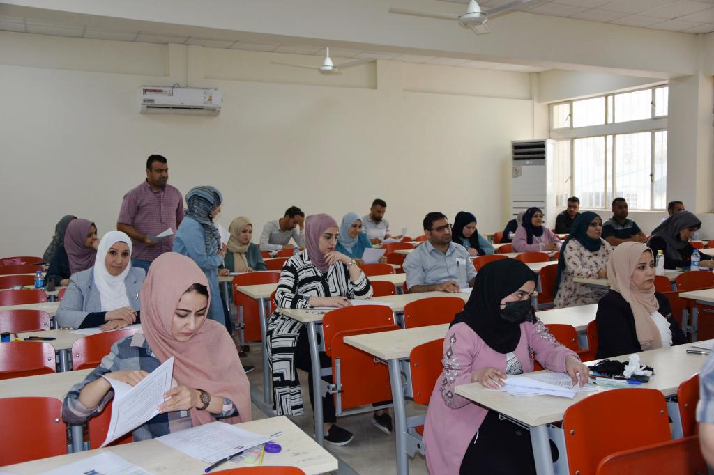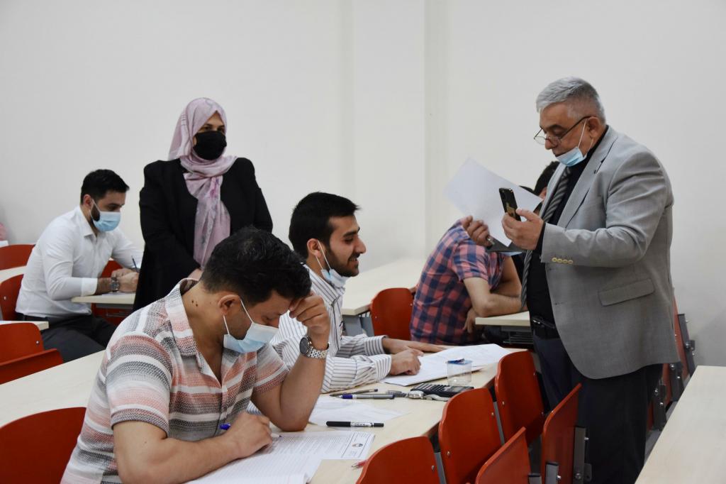 أجرت كلية العلوم صباح يوم الأحد الموافق 22 أيار/ 2022 الامتحان التنافسي للمتقدمين للدراسات العليا في أقسام الكلية للعام الدراسي 2022/ 2023 ، حيث تفقد السيد مساعد رئيس الجامعة للشؤون العلمية الأستاذ الدكتور منير سالم طه و السيدة العميد الأستاذ الدكتورة هيام عادل إبراهيم اضافة الى الفريق الوزاري عبر الفضاء الالكتروني سير العملية الامتحانية في الكلية مثنين على الاجراءات الوقائية المتبعة والجهود المبذولة من قبل الكلية واقسامها بهدف سير العملية بسلاسة ونجاح. مؤكدين على سرعة انجاز تصحيح الدفاتر الإمتحانية و اعلان النتائج وفق التوقيتات الوزارية.جدير بالذكر أن عدد المتقدمين للدراسات العليا في أقسام الكلية الذين يحق لهم أداء الامتحان التنافسي بلغ ( 262 ) متقدماَ يتنافسون وفق خطة القبول و عدد المقاعد التي أعلنتها الكلية في وقت سابق، حيث حرصت الكلية على توفير كافة الأجواء و المستلزمات اللازمة لإجراء الامتحان التنافسي بما يتوافق مع تعليمات وزارة التعليم العالي والبحث العلمي و رئاسة جامعة الموصل.من جانب آخر استمرت عمليات تصحيح الدفاتر الامتحانية الى وقت متأخر ما بعد الدوام الرسمي مع تهيئة كافة الظروف المناسبة للكادر التدريسي .هذا و من المؤمل اعلان النتائج في وقت قريب بعد انتهاء أعمال اللجان التدقيقية.راجين للجميع التوفيق والنجاح.
