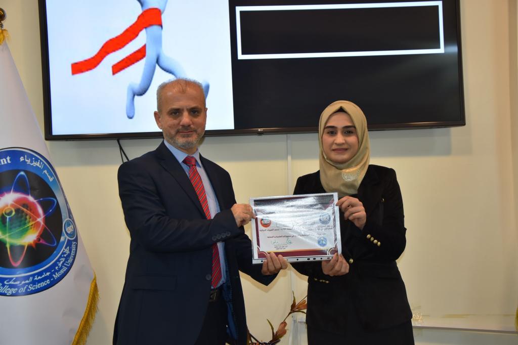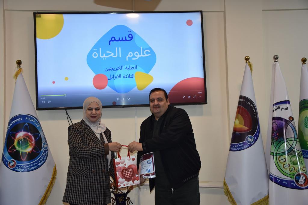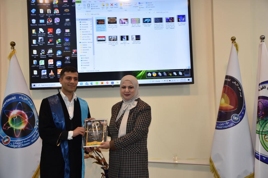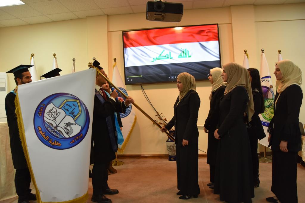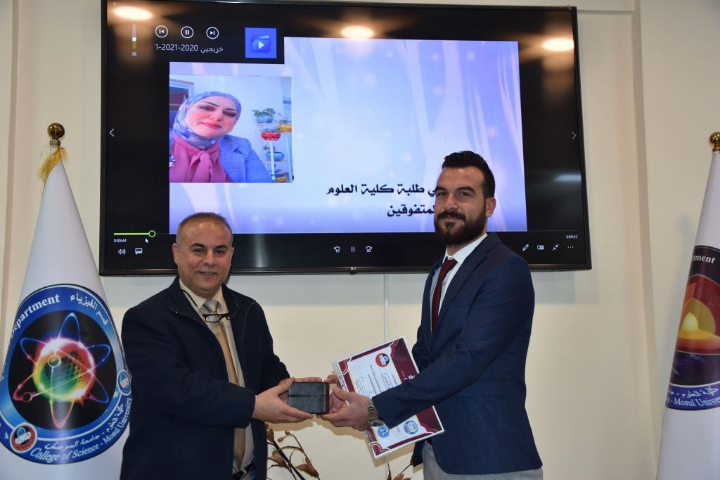 برعاية السيد رئيس جامعة الموصل الأستاذ الدكتور قصي كمال الدين الأحمدي المحترم و إشراف و متابعة السيدة عميد كلية العلوم الأستاذ المساعد الدكتورة هيام عادل إبراهيم الطائي المحترمة و حضور السيد المساعد العلمي لرئيس جامعة الموصل الأستاذ الدكتور منير سالم طه المحترم والسادة أعضاء مجلس كلية العلوم الموقر، و في صباح جميل من صباحات مدينتنا العزيزة و في ربوع جامعتنا المعطاء و على رحاب قاعة قسم الكيمياء أقامت كلية العلوم حفلاً تكريمياً للطلبة الأوائل على أقسام الكلية و الطلبة الأوائل على المراحل للأقسام كافة للعام الدراسي 2020 – 2021.أستهل الحفل بتلاوة من القرآن الكريم تلاها الخريج عبدالله مروان من قسم علوم الحياة ، ثم ألقى السيد المساعد العلمي المحترم كلمة بهذه المناسبة عبّر عن اعتزازه وفخره بطلبة الكلية المتفوقين وأشاد بمبادرة عمادة الكلية في تكريم الطلبة وتمنى لهم التوفيق في حياتهم المستقبلية وقدم لهم شكره وتقديره لمجهوداتهم في التفوق وطلب العلم .بعد ذلك القت السيدة العميد كلمة أشادت فيها بتفوق الطلبة الأوائل و تميّزهم و حثتهم على الجدّ و المثابرة في طلب العلم و المعرفة لأنهم رسل العلم في نقل الصورة الحقيقية عن كل ما تلقوه من علم و معرفة تطبيقية في مواقع العمل بعد التخرج ، تلا ذلك عرضاً فيديوياً تعريفياً بالطلبة الاوائل ، ثم تُوج الحفل بتوزيع كتب الشكر للطلبة الأوائل و المتفوقين و الهدايا تثميناً لجهودهم من قبل السيدة العميد و السادة رؤساء أقسام الكلية .كان للطالب الأول على الكلية ( عبدالوهاب أحمد بشير ) كلمة حثّ فيها الطلبة على مواصلة العمل الدؤوب لتحقيق أهدافهم فالعلم لا يدرك بالخمول و لا يبلغه الكسول و إن طريق التفوق شائك و إن دربه منزوع الورود محفوفٌ بالمطبات مليءٌ بالعقبات ، بعدها تم أداء القسم للطلبة الأوائل أن يصونوا العلم في خدمة الأمة والمدينة و أن يسخروا جميع طاقتهم لنفع الناس به ثم حملوا راية العلم والعزم و تعهدوا بأن يجعلوها خفاقة في العُلى لينقشوا أسماءهم في دفاتر المجد .و في ختام الحفل و من باب الاعتزاز و الافتخار قدّم أولياء امور الطلبة نيابة عن أبنائهم كلمات شكر إلى أساتذتهم لما بذلوه من جهد في احتضانهم لكسب العلم و رعايتهم كآباء لهم .
