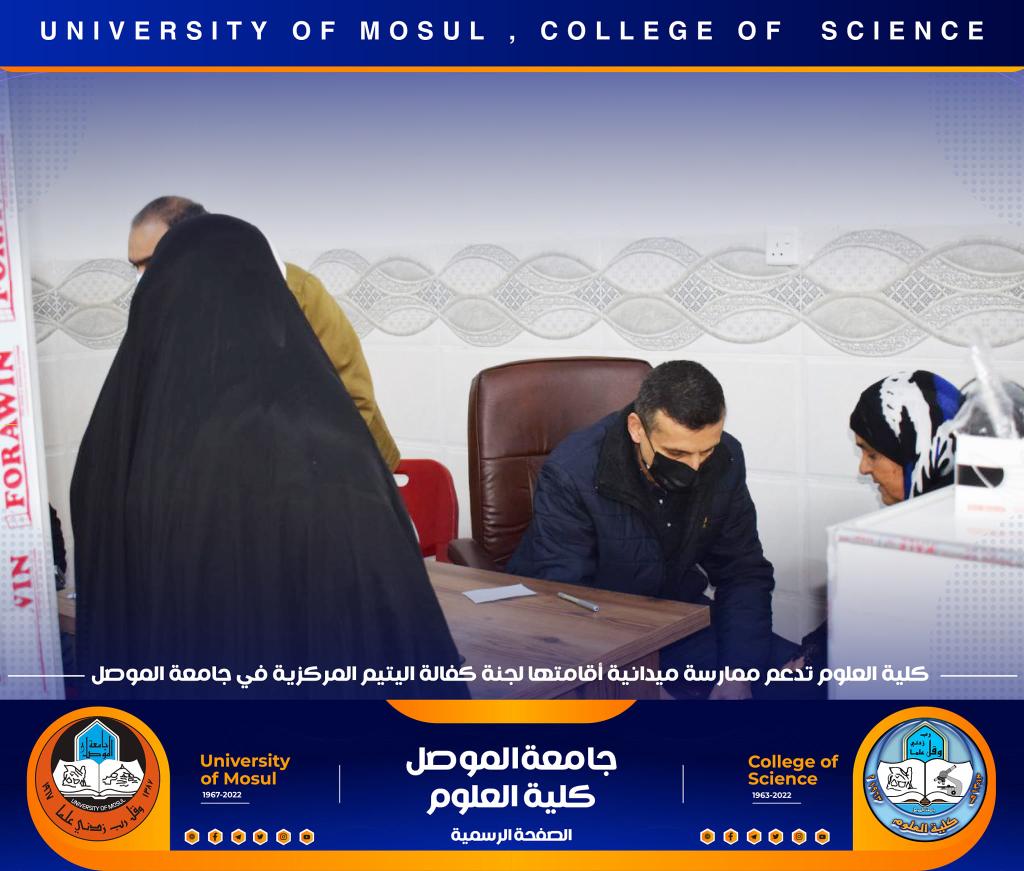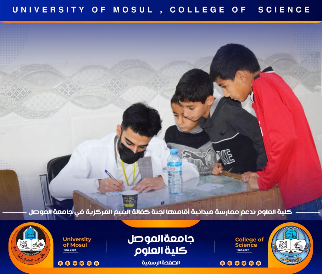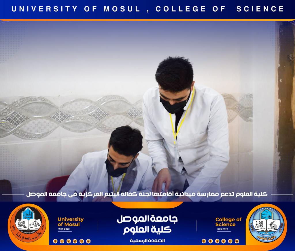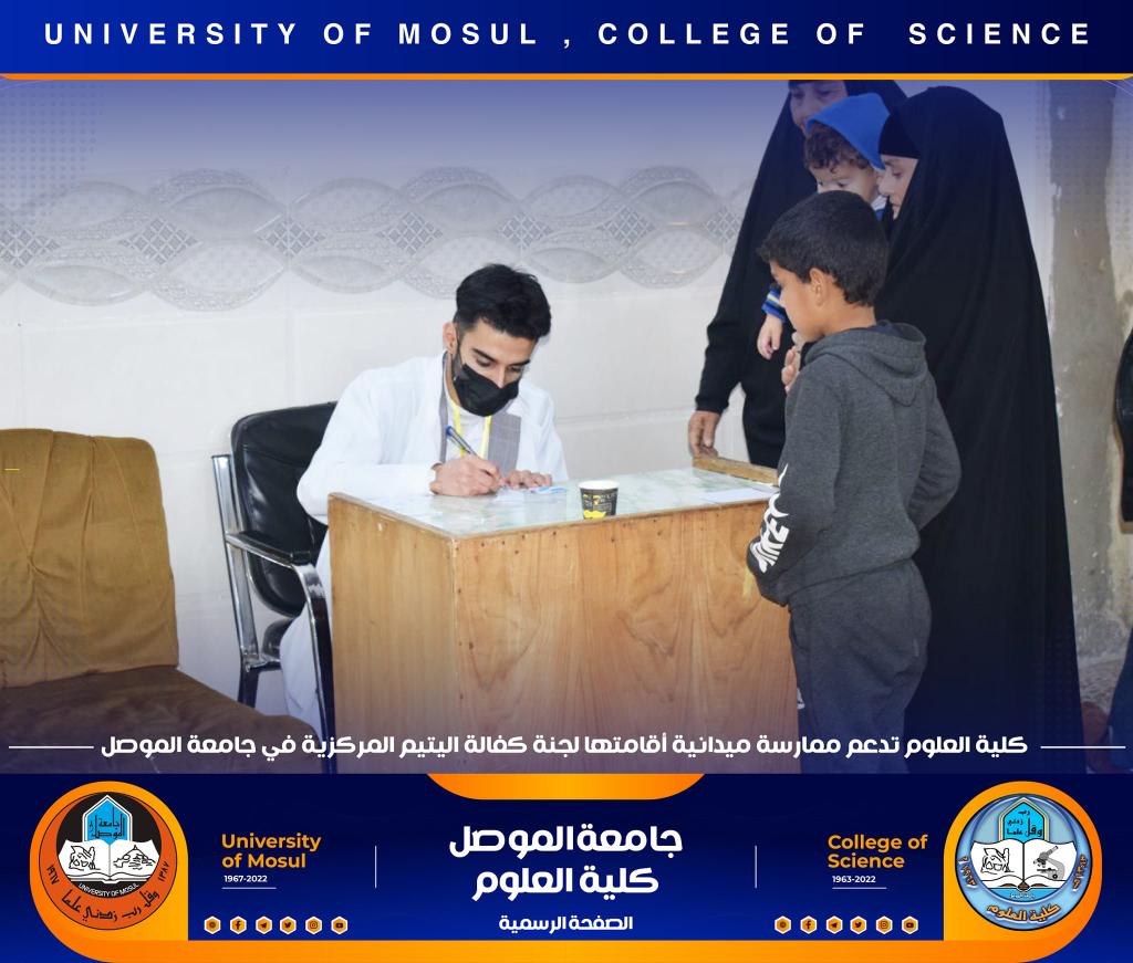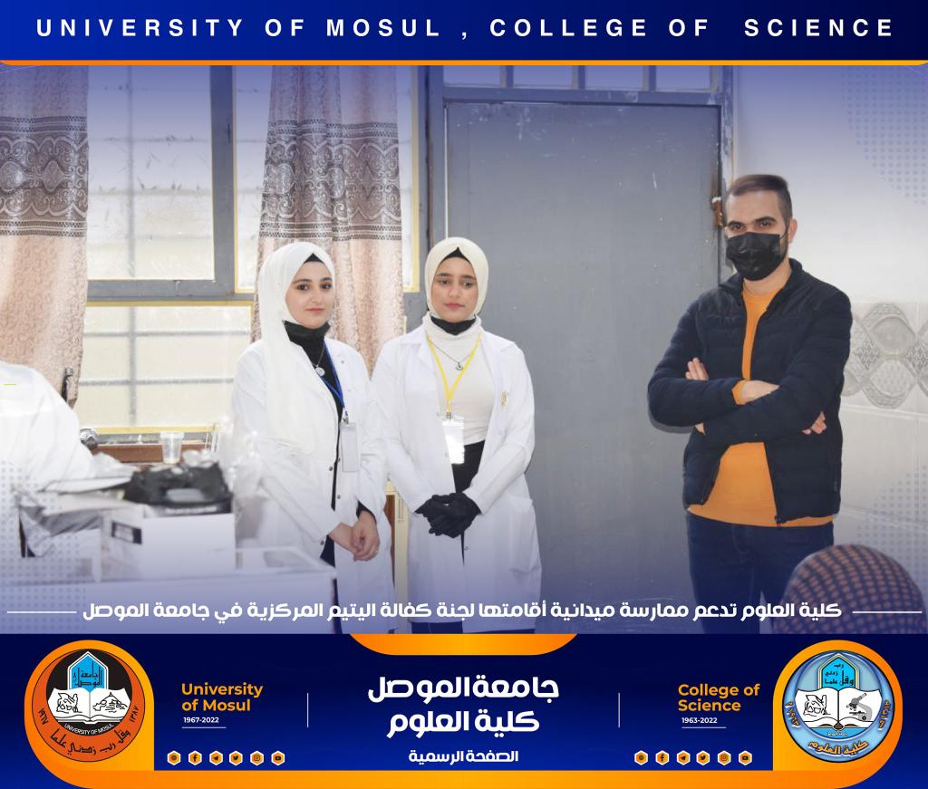 كلية العلوم تدعم و تشارك في ممارسة ميدانية أقامتها لجنة كفالة اليتم المركزية في جامعة الموصل