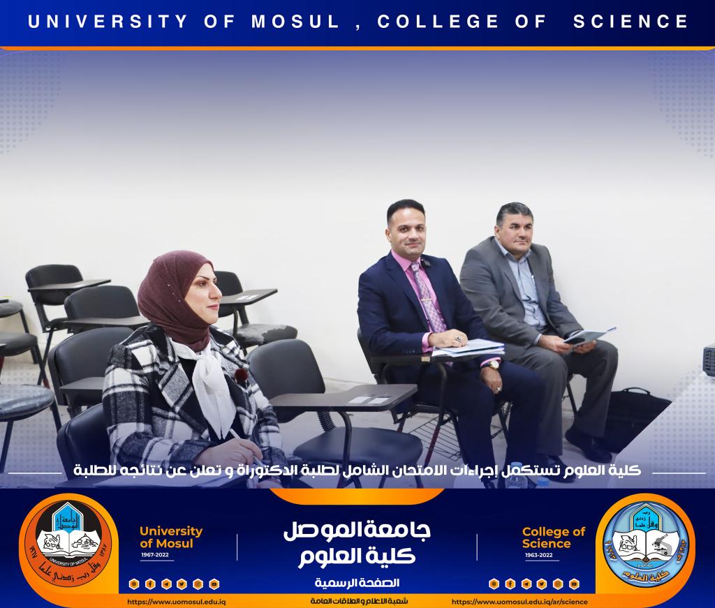 كلية العلوم تستكمل اجراءات الامتحان الشامل لطلبة الدكتوراه و تعلن عن نتائجه