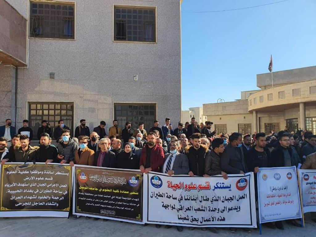 كلية العلوم تشارك في وقفة الحداد التي نظمتها جامعة الموصل ترحماً على أرواح شهداء (ساحة الطيران) في بغداد