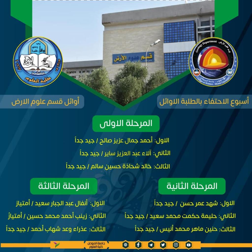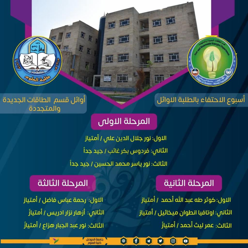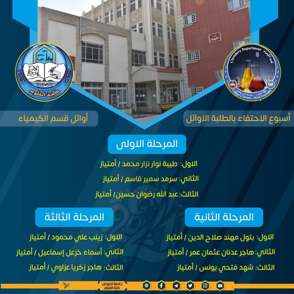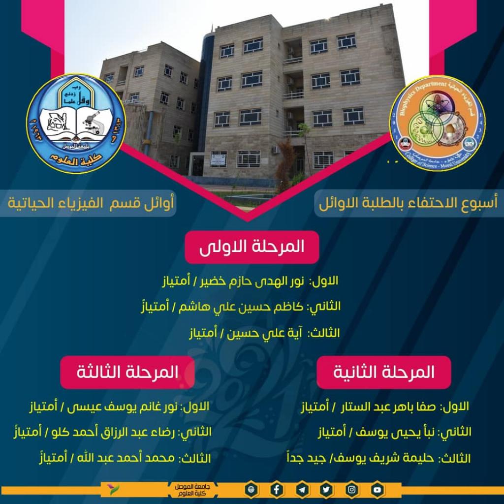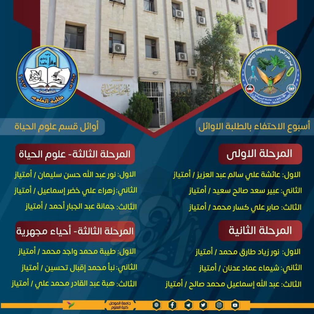 كلية العلوم تعلن عن أوائل المراحل الأولى والثانية والثالثة