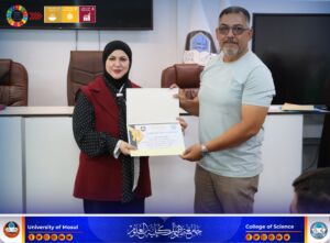 واختُتمت الدورة بإجراء امتحان تقويمي للمشاركين، أعقبه توزيع شهادات المشاركة من قبل السيدة عميد كلية العلوم، الأستاذ الدكتورة هيام عادل الطائي، التي أشادت بتفاعل المشاركين وجهودهم في إنجاح فعاليات الدورة.