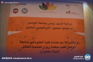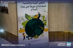 برعايةٍ مُباركـةٍ من السَّيـد رئيـسِ جامِعَـةِ الموصـلِ الأستـاذ الدكتـور وحيـد محمـود الإبراهيمي المُحترم وإشـرافِ السَّيِّــدة عميـد كُليَّـــةِ العلـــومِ الأُستـاذ الدكتـورة هِيــام عـادل إبراهيـم المُحترمـة وبالتَّعـاونِ مع مُنظمة ريـزان للتنمية والتطوير وبإلمـام وحضـور السَّـادة أعضـاء مجلس الكُلِّيَّــةِ، أُقيم يـوم الإثنين المُوافـق 8 كانون الأول 2025 مُلتقى “البيئـةُ والتنميَـةُ المُستدامة ودورُهـا في بنـاءِ السَّـلامِ” في قاعة MY CITY بمدينة الموصل.