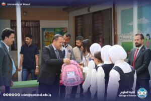 انطلاقـاً من رسالتنـا التربوية والإنسانية السَّاميـة في بناء جيل واعٍ ومتعلم واستجابةً لمبادرة (مدرستي) التي أطلقها معالي وزير التعليم العالي والبحث العلمي الأستاذ الدكتور نعيم ياسـر العبودي المحترم، والهادفة إلى توحيد الجهود الوطنية في دعم الأطفال الأيتام والمحتاجين في المدارس الحكومية، وبرعاية السيـد رئيس جامعة الموصـل الأستاذ الدكتور وحيد محمود الإبراهيمي المُحترم، وبإشراف السيدة عميد كليَّـةِ العلـوم الأستاذ الدكتورة هيام عادل إبراهيم المحترمـة، نظّمت وحدة العمل التطوعي في قسم النشاطات الطلابية بالكلية هذه المبادرة بالتعاون مع شعبة العمل التطوعي في المديرية العامة لتربية نينوى.