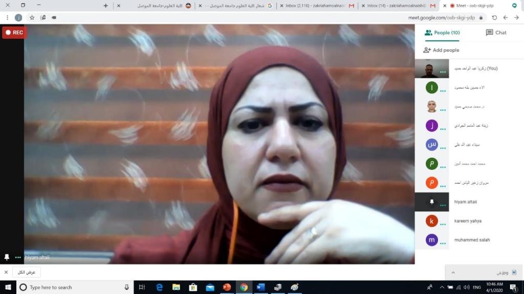 حسب توجيهات السيد رئيس جامعة الموصل الأستاذ الدكتور قصي كمال الدين الأحمدي بفتح آلية التواصل عبر الفضاء الإلكتروني …بحضور السيدة عميد كلية العلوم الأستاذ المساعد الدكتورة هيام عادل إبراهيم الطائي و السادة رؤساء الأقسام ، عقد مجلس كلية العلوم جلسته الإعتيادية عبر الفضاء الإلكتروني يوم الأربعاء الموافق 2020/4/1 .