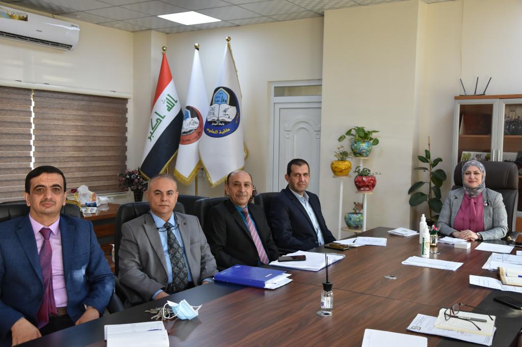 عقد مجلس كلية العلوم جلسته السابعةيوم الأربعاء الموافق 17 تشرين الثاني 2021 برئاسة السيدة عميد الكلية الأستاذ المساعد الدكتورة هيام عادل إبراهيم الطائي و عضوية السادة معاوني العميد و السادة رؤساء الأقسام .ناقش المجلس تطبيق توجيهات الوزارة في إرساء معايير جودة المختبرات و اتباع النظم المعمول بها عالمياً و كذلك العمل بتوصيات اللجنة المشرفة فيما يخص السلامة المهنية لمنتسبي كليتنا فضلاً عن مناقشة العديد من المواضيع الأخرى المدرجة على جدول الأعمال .