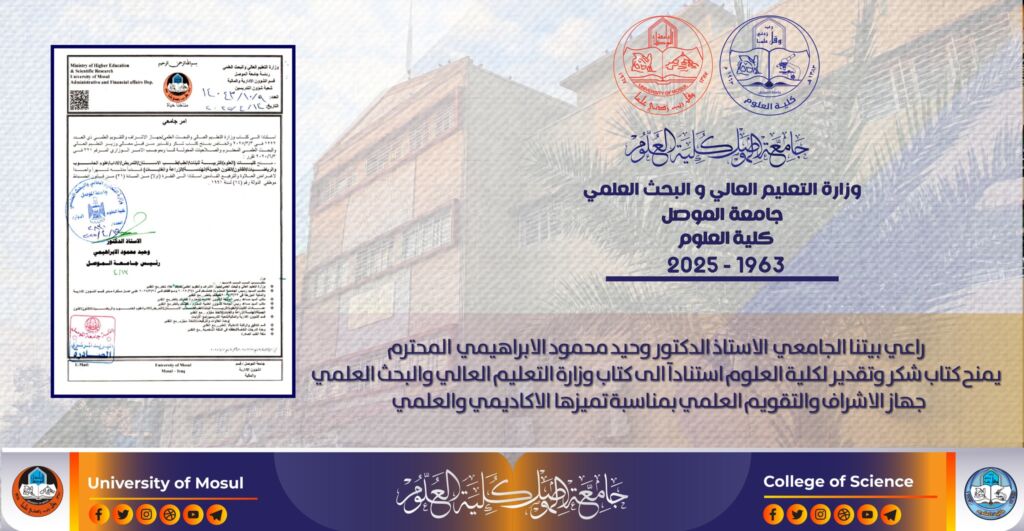 معالي وزيـر التعليـمِ العالـي والبحـثِ العلمـي يمنـحُ كُلِّيَّتَنــا كتـابَ شكرٍ وتقديـر