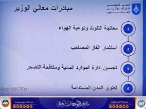 وفي ختام المؤتمر، دعا معالي الوزير المحترم الجامعات العراقية إشراك المبتعثين في اللجان العلمية، وتكليفهم بإعداد دراسات تتعلق بقضايا استراتيجية كإدارة الموارد، والبيئة، والتنمية المستدامة.