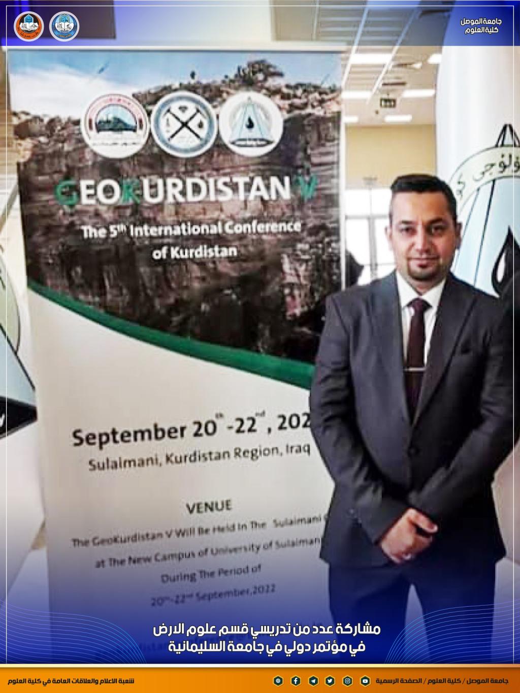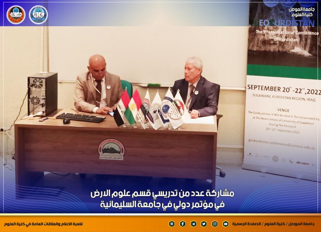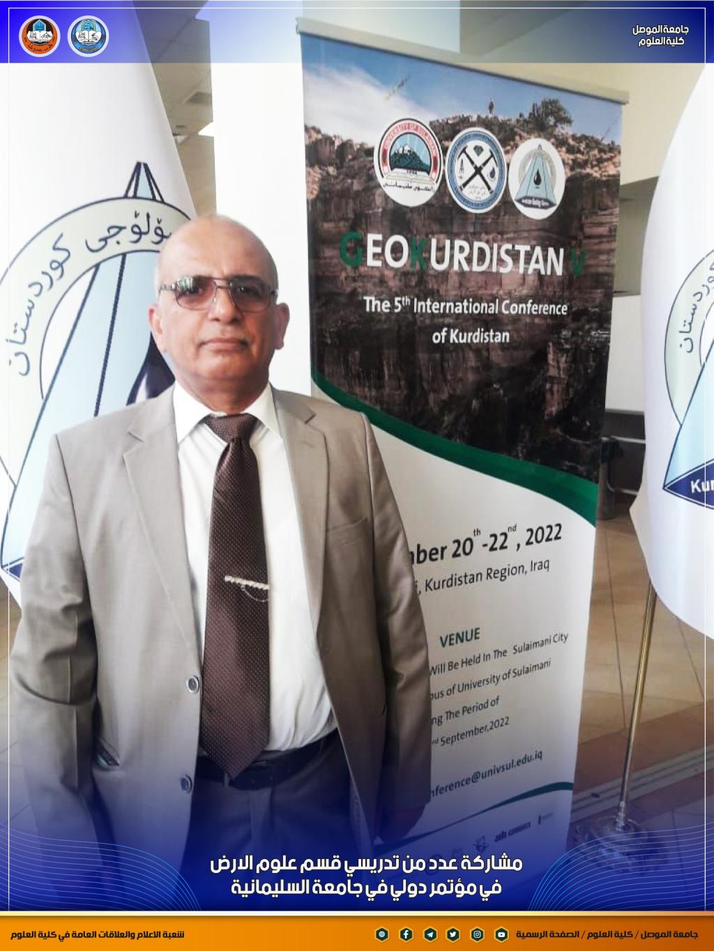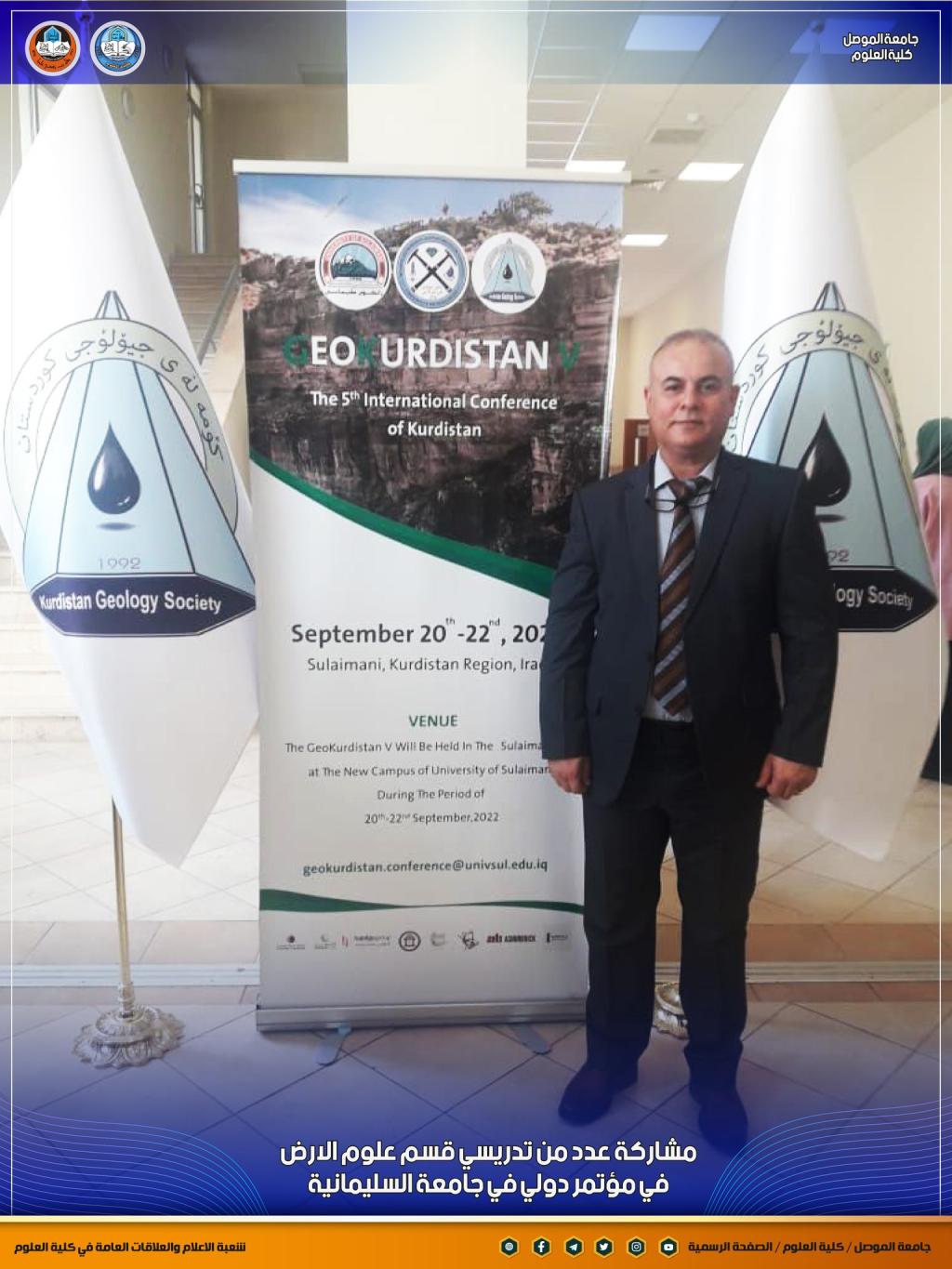 شارك كل من : أ.د. نسرين مال الله عزيز ، أ.د. زيد عبدالوهاب ملك ، أ.م.د. ربيع خلف حسن ، م.م. محمد موفق يحيى من قسم علوم الأرض في كليتنا في مؤتمر جيوكردستان الدولي الخامس ( Geo Kurdistan 5 ) الذي أقامته جامعة السليمانية للفترة من 20 أيلول و لغاية 22 أيلول 2022، و تنوعت مشاركة تدريسيينا ما بين المشاركة في اللجنة العلمية الى المشاركة في ادارة الجلسات و القاء البحوث إضافة الى المشاركة بالحضور.تمنياتنا لكادرنا التدريسي بالتوفيقشعبة الإعلام والعلاقات العامةالسبت 24 أيلول 2022