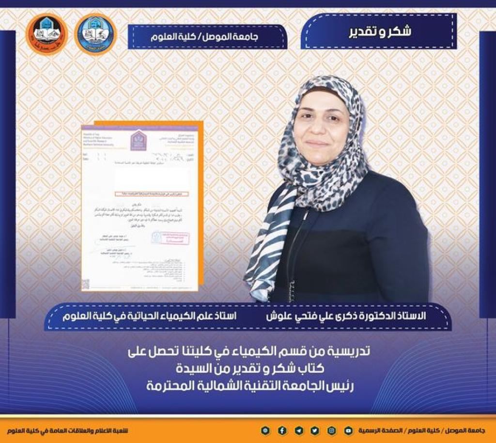 بسم الله الرحمن الرحيم ” يَرْفَعِ اللَّهُ الَّذِينَ آمَنُوا مِنكُمْ وَالَّذِينَ أُوتُوا الْعِلْمَ دَرَجَاتٍ”يطيب لأسرة كلية العلوم ممثلة بالسيدة العميد الأستاذ الدكتورة هيام عادل إبراهيم أن تتقدم بخالص التهاني و أطيب الأماني الى الدكتور ( عامر ذنون عبد الرحمن ) التدريسي بقســــم الكيمياء فـــــي كليتنـــــا بمناسبة ترقيته العلمية إلى مرتبة ( الأستاذية ) بتخصص ( الكيمياء الفيزياوية ).راجين له ولجميع كادرنا التدريسي والوظيفي دوام التقدم في سلم الترقية العلمية و الوظيفية.الف مباركشعبة الإعلام والعلاقات العامةالخميس 1 أيلول 2022