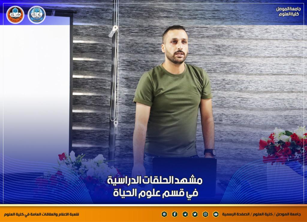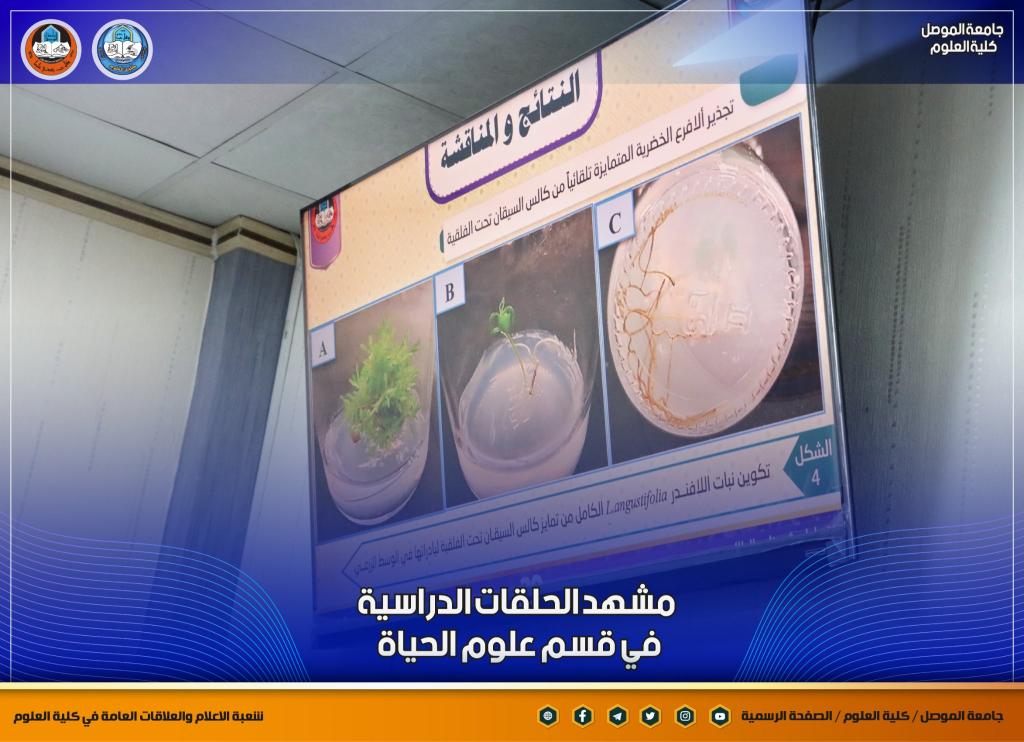 ضمن مشهد الحلقات الدراسية في كلية العلوم / قسم علوم الحياة و بحضور السيد رئيس القسم الأستاذ المساعد الدكتور رائد سالم الصفار وعدد من تدريسي وطلبة القسم القى كل من :1- طالبة الماجستير (عزة عادل رشيد) حلقة دراسية عن رسالتها الموسومة ( تضمين جيناتT-DNA لبلازميدات Agrobacterium rhizogenes ATCC15834 في جينوم نبات اللافندر والتحري عنها جزيئياً ) .2- طالب الماجستير ( أشرف محمد حامد ) حلقة دراسية عن رسالته الموسومة ( كفاءة أنسجة نبات زهرة الشمس المحولة وراثيا ببكتريا Agrobacterium rhizogenes ATCC 15834 في المعالجة النباتية ) ، بإشراف الأستاذ الدكتور أمجد عبد الهادي محمد .وذلك صباح هذا اليوم الموافق الأحد 21 آب 2022 على قاعة الدكتور محمود الحاج قاسم في القسم.شعبة الإعلام والعلاقات العامةالأحد 21 آب 2022