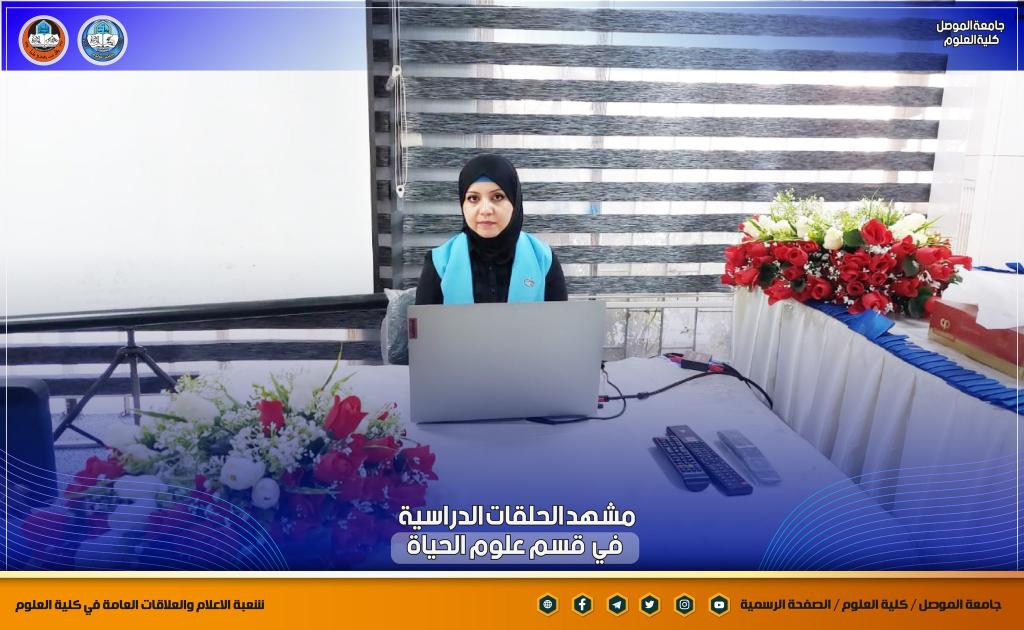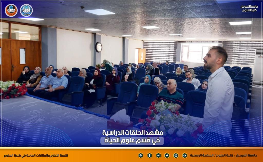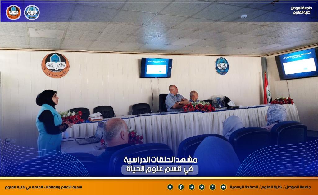 ضمن سلسلة الحلقات في قسم علوم الحياة ألقى كل من :1- طالبة الماجستير عفراء عبد الستار حلقة دراسية عن رسالتها الموسومة ” تحديد الاجسام المضادة الذاتية المرتبطة مع امراض الغدة الدرقية المناعة الذاتية ” وبأشراف الأستاذ الدكتور محمود عبد الجبار حسين .2- طالب الماجستير قصي ثائر محمد حلقة دراسية عن رسالته الموسومة ” دراسة بيئية واحيائية للمياه الجوفية في مدينة الموصل / العراق ومدى صلاحيتها للأغراض المدنية المختلفة ” وبإشراف الاستاذ المساعد الدكتور عبد المنعم محمد علي كنة.وذلك صباح يوم الأحد الموافق 25 أيلول 2022 على قاعة الأستاذ الدكتور محمود الحاج قاسم بحضور السيد رئيس القسم و عدد من تدريسي وطلبة القسم.تمنياتنا للجميع بالموفقية.شعبة الإعلام و العلاقات العامةالاثنين 26 أيلول 2022