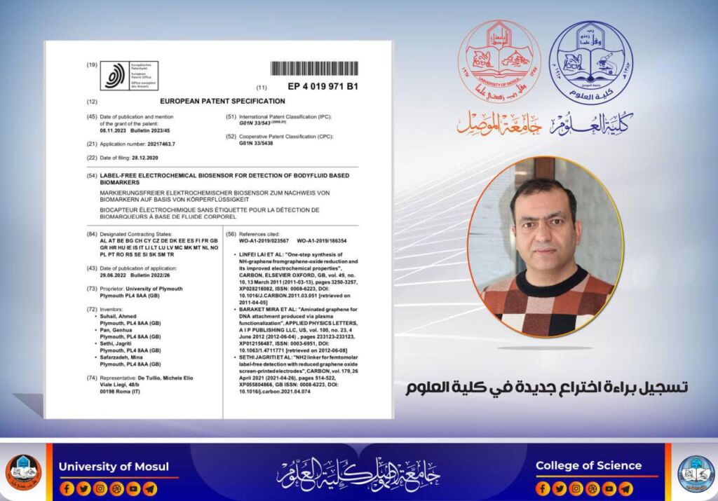 تسجيل براءة اختراع جديدة في كلية العلوم