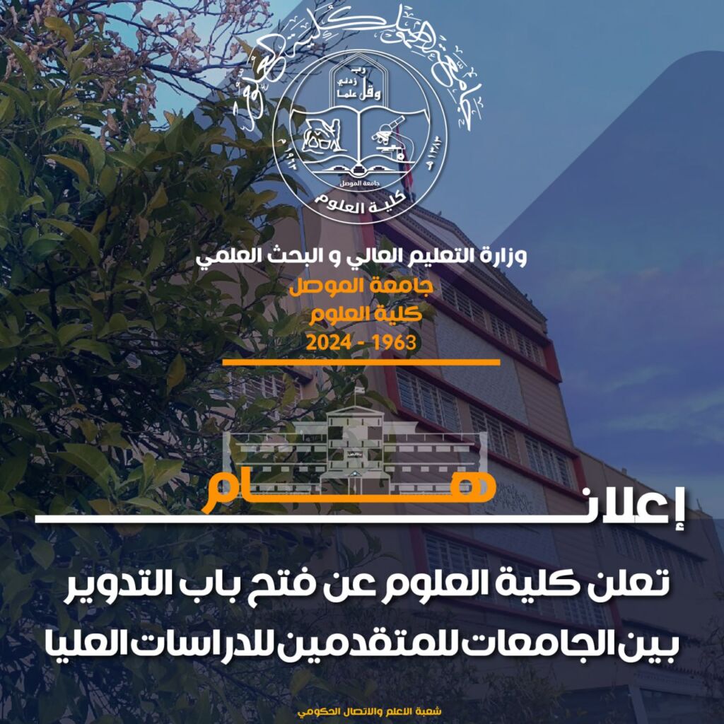 ضمن مشهد الحلقات الدراسية في كلية العلوم وفي قسم علوم الحياة ، ألقى طالب الدكتوراه ( يونس ابراهيم محمد علي ) يوم الأربعاء الموافق 11 أيلول 2024 على قاعة أ.د. محمود الحاج قاسم حلقة دراسية عن اطروحته الموسومة ” تصنيف بعض انواع ذباب الرمل ودورها في نقل اللشمانيا في محافظة نينوى” بإشراف: أ.د. منيف عبد مصطفى.