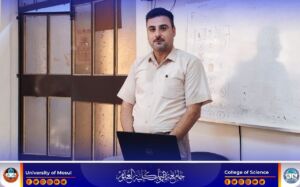 – طالب الدكتوراه علي احمد جاسم حلقة دراسية عن اطروحته الموسومة ” دراسة تصنيفية للتنوع البيولوجي في منطقتي حميدات وحمام العليل في محافظة نينوى ” بإشراف: أ.م.د. فتحي عبدالله منديل .