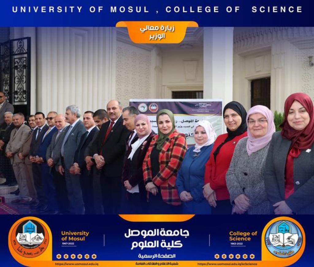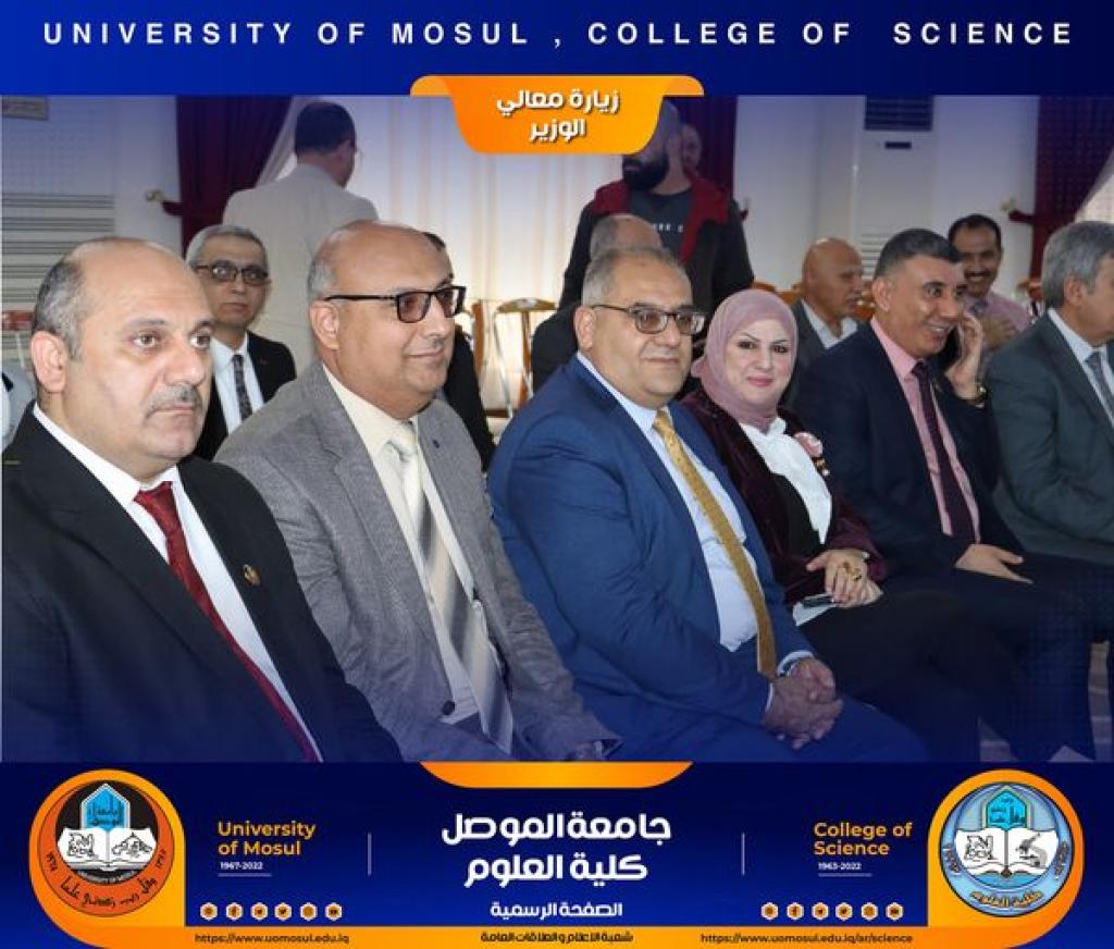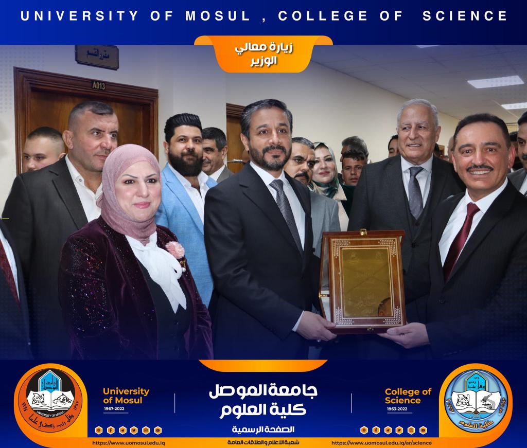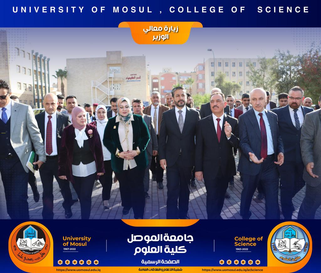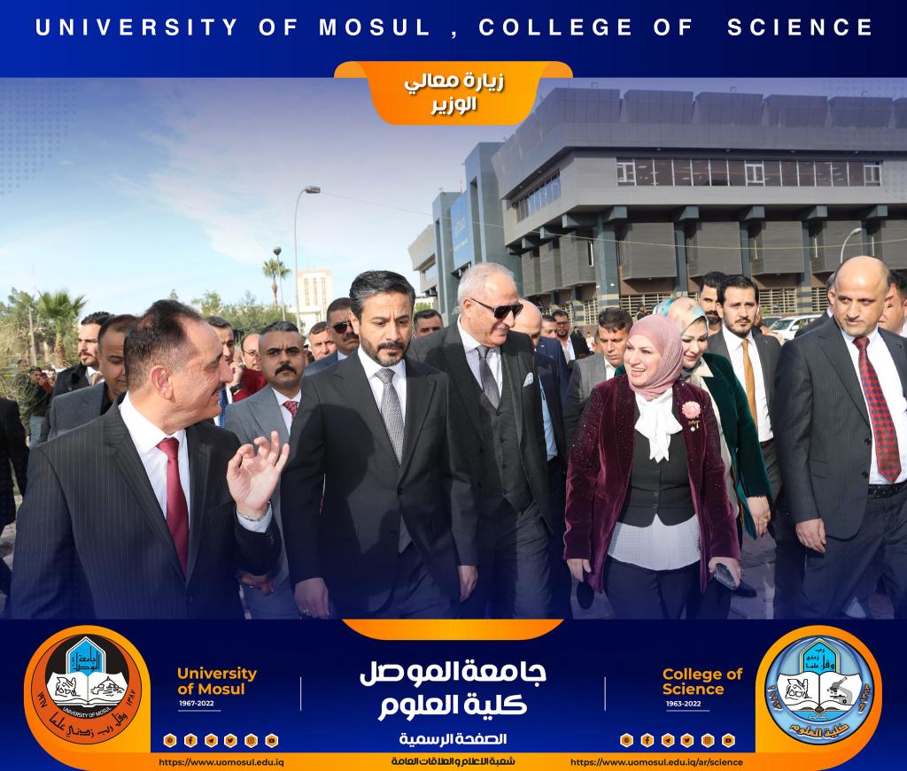 زار معالي وزير التعليم العالي والبحث العلمي الدكتور نعيم العبودي المحترم جامعات محافظة نينوى صباح هذا اليوم الإثنين الموافق 21 تشرين الثاني 2022 و كان في استقباله السيد نجم الجبوري محافظ نينوى وقائد عمليات نينوى ورئيس لجنة التعليم النيابية وعدد من رؤساء جامعات نينوى ، جامعة الموصل ، التقنية الشمالية ، نينوى ، تلعفر، والحمدانية.أجرى معاليه زيارات متتالية الى جامعات محافظة نينوى، و خلال زيارته لجامعة الموصل أجرى جولة في المكتبة المركزية و مسرح الجامعة الكبير و المركز الطلابي و عدد من كليات الجامعة.تشرفت كلية العلوم بزيارة معاليه رفقة السيد رئيس جامعة الموصل الأستاذ الدكتور قصي كمال الدين الأحمدي و السيد رئيس لجنة التعليم النيابية الأستاذ الدكتور مزاحم الخياط ، و السيدة رئيس الجامعة التقنية الشمالية الأستاذ الدكتورة علياء عباس علي العطار ، والسيد رئيس جامعة نينوى الأستاذ الدكتور أسامة الحمداني والسيد رئيس جامعة الحمدانية الأستاذ الدكتور عقيل يحيى هاشم الأعرجي ، والسيد رئيس جامعة تلعفر الأستاذ الدكتور عبد العزيز أحمد عزيز، إضافة الى السادة مساعدي رئيس جامعة الموصل الأستاذ الدكتور منير سالم طه و الأستاذ الدكتور وحيد محمود الإبراهيمي.كان باستقبالهم السيدة عميد كلية العلوم الأستاذ الدكتورة هيام عادل إبراهيم و السادة أعضاء مجلس الكلية و عدد من تدريسي و طلبة الكلية.حظيت الكلية بافتتاح معاليه لبنايتي A, D في قسم الكيمياء مطلعاً على مختبراتها و قاعاتها الدراسية مثنياً على الجهود المبذولة في إدامة المسيرة العلمية و البحثية لمنتسبي و طلبة الكلية ، معرباً عن دعمه الكامل للكلية ولمسيرة العلم و البناء فيها وانجازاتها المستمرة على أرض الواقع و لتطور مستواها العلمي على صعيد المشاريع الرائدة و الأجهزة المختبرية التي توفرها الكلية بشكل مستمر في مختبراتها.كان من دواعي سرور أسرة كلية العلوم تقديم ” درع الكلية ” لمعالي الوزير تثميناً وتقديراً لهذه الزيارة الميمونة.في ختام زيارته أثنى معاليه على الانجازات العلمية و العمرانية المتحققة في جامعة الموصل قائلاً ” نحن معكم ” .شعبة الإعلام والعلاقات العامةالإثنين 21 تشرين الثاني 2022