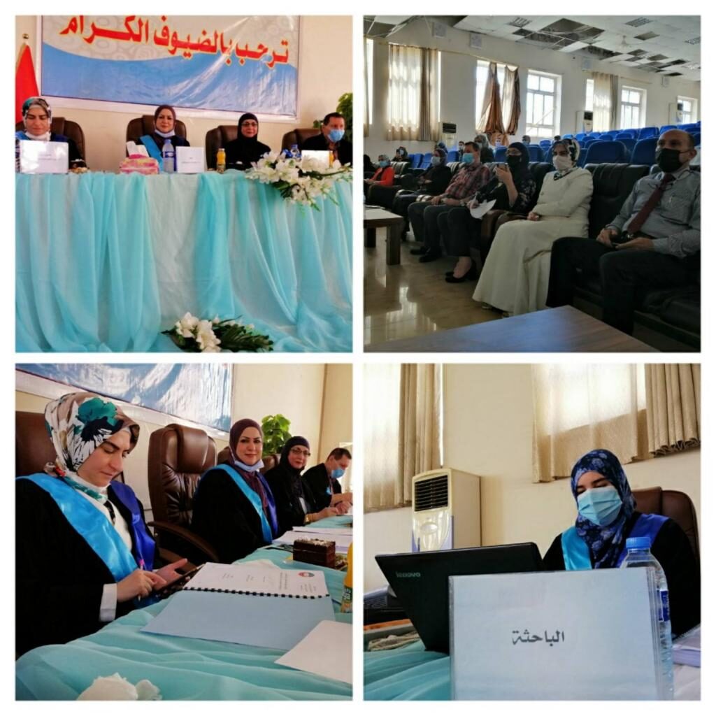 on it )للطالبة ( سمية عدنان صالح ) من قسم علوم الحياة يوم الخميس الموافق 27 / 8 / 2020 برئاسة السيدة عميد كلية العلوم الأستاذ المساعد الدكتورة هيام عادل إبراهيم الطائي .تضمنت الدراسة عزل أنواع ممرضات المعقد الأحمر و تشخيصها باستخدام طريقة LAMP الجزيئة كأول إستخدام محلي لهذه الطريقة و دراسة تأثير مادتين طبيعية ( اللبان و الشب) و مضادين قياسيين ( CIP و CHX) على بعض النواحي الأمراضية لهذه الممرضات حيث أثبتت هذه المواد كفاءة في تثبيط نمو و منع التجمع لهذه الممرضات كما أظهر اللبان كفاءته في تثبيط الغشاء الحيوي متعدد المايكروبات مقارنة بالمضادات القياسية التي لم يكن لها تأثير. و لأول مرة محلياَ و باستخدام فلم اللبان تمكنت الدراسة من تصنيع بوليمر يضخ المواد المضادة للبكتريا مباشرة داخل جيب السن . كما تمكنت الدراسة و لأول مرة محلياً من تصنيع علك طبي من اللبان باستخدام مواد متوفرة محلياً و بكلفة إقتصادية قليلة و الذي أثبت كفاءته في إختزال الحمل المايكروبي في أنسجة اللثة المصابة .
