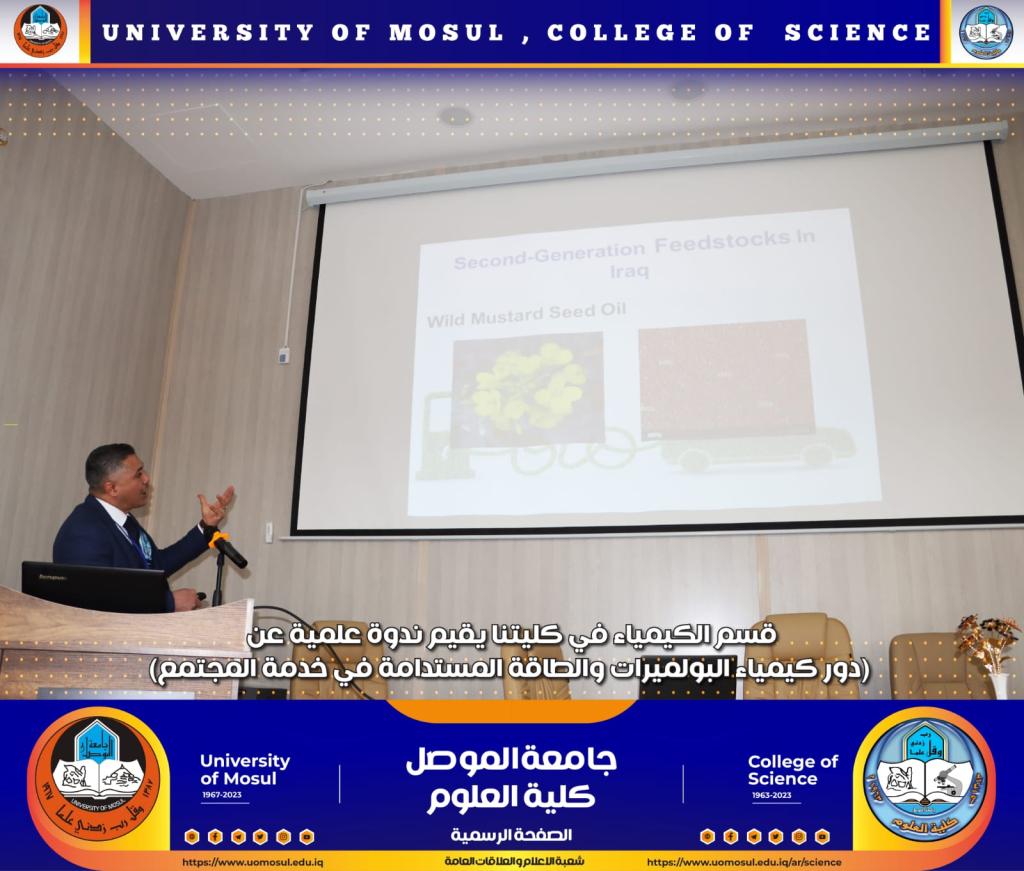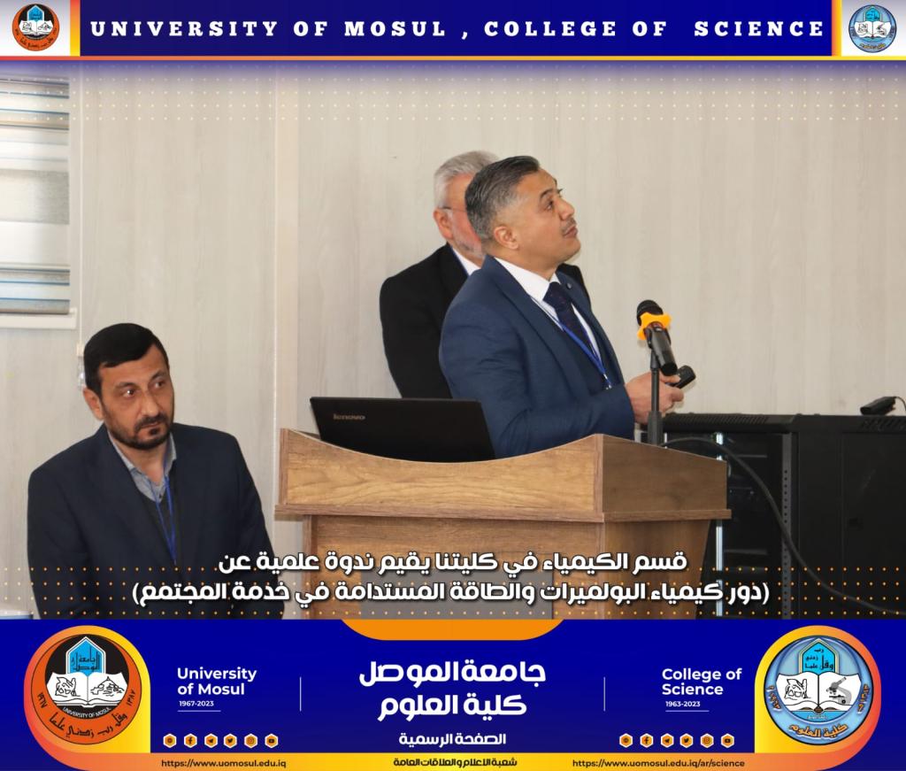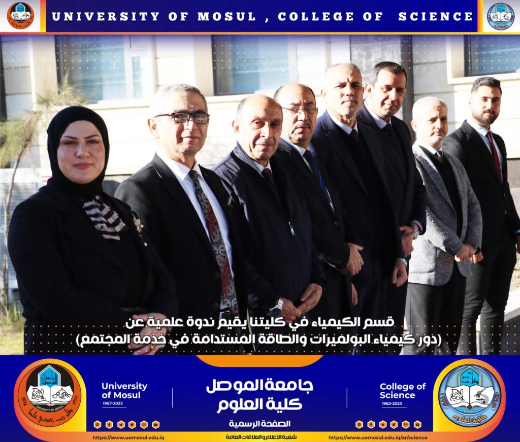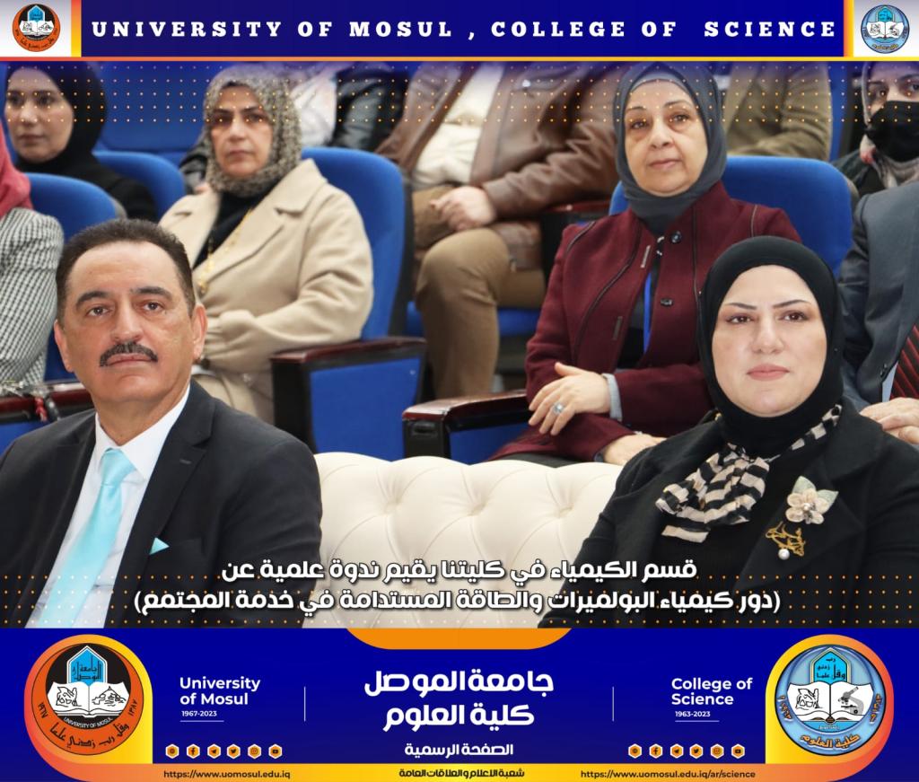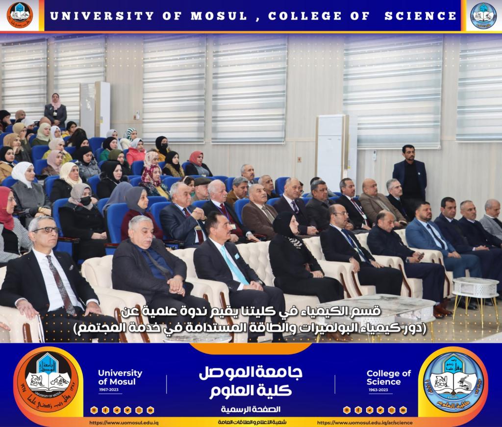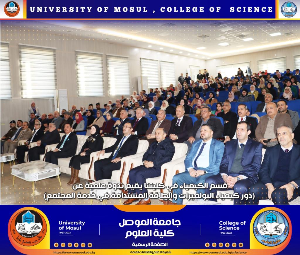 برعاية السيد رئيس جامعة الموصل الأستاذ الدكتور قصي كمال الدين الأحمدي وبحضور السيد مساعد رئيس الجامعة للشؤون العلمية الأستاذ الدكتور منير سالم طه المحترم وبإشراف السيدة عميد كلية العلوم الأستاذ الدكتورة هيام عادل إبراهيم ، أقام قسم الكيمياء في كليتنا ندوة علمية بعنوان ” دور كيمياء البوليمرات والطاقة المستدامة في خدمة المجتمع ” صباح يوم الخميس الموافق 12 كانون الثاني 2023 في رحاب قاعة الدكتور فاروق العمري ، حضرها السادة أعضاء مجلس الكلية و عدد من الشخصيات الأكاديمية و العسكرية و تدريسي و طلبة الكلية.استهلت الندوة بتلاوة آيات من الذكر الحكيم تلتها كلمة ترحيبية وفلم وثائقي عن قسم الكيمياء.هدفت الندوة الى مناقشة استخدام البوليمرات في الانتاج الصناعي واستبدال العديد من المواد الأولية التقليدية بمواد بوليمرية ذات صفات متطورة يمكن تحويرها لتصبح إمّا موصلات كهربائية جيدة أو منظمة لعملية نقل واطلاق الدواء داخل الجسم الحي أو لخزن الماء والسوائل الأخرى للاستفادة منها في ري المزروعات، من خلال ثلاث محاضرات :حملت أولها عنوان ( استحصال وقود حيوي من نفايات حيوية صلبة ) من تقديم الأستاذ الدكتور عبد الرحمن باسل فاضل تضمنت نبذة مختصرة عن الوقود الحيوي وطرق انتاجه من المخلفات الحيوية الصلبة المتوفرة محليا كما تطرقت المحاضرة الى أنواع الوقود الحيوي فضلاً عن بعض المواد الأولية والمخلفات الحيوية المتوفرة محلياً وكيفية تحويلها الى وقود حيوي بأشكال مختلفة.في حين تطرق الأستاذ الدكتور أسعد فيصل خطاب في المحاضرة الثانية التي حملت عنوان ( النهضة الحديثة في التوصيل الكهربائي للبوليمرات ) الى البوليمرات الموصلة للكهرباء بأنواعها المختلفة وتطبيقاتها في المجالات الصناعية والطبية والكهربائية مثل الخلايا الشمسية والبطاريات القابلة للشحن ومخازن الطاقة.أمّا المحاضرة الثالثة فقد سلطت الضوء على ( بوليمرات الهيدروجيل الذكية في التقنيات الحديثة ) من تقديم الأستاذ الدكتور فوزي حبيب جبرائيل و تناولت استخدام البوليمرات الذكية وتطبيقاتها في المجالات الصحية والزراعية وتصنيع بوليمرات الهيدروجيلات وتطبيقاتها في مجالات مختلفة.و خرجت الندوة بالعديد من التوصيات أهمها :1- تشجيع الباحثين على اجراء البحوث التطبيقية التي تساهم في حل مشاكل الطاقة وتساهم في التنمية والتطور لصالح (وزارة التعليم العالي والبحث العلمي) .2- استغلال المواد أولية المأخوذة من مصادر متجددة بدلاً من استخدام مواد أولية مأخوذة من المصادر الأحفورية الناضبة في انتاج الطاقة لصالح (وزارة الصناعة) .3- نشر ثقافة البحوث المشتركة بين قسم الكيمياء والاختصاصات المختلفة مثل علوم الحياة والعلوم الطبية والزراعية والهندسة الكهربائية والميكانيكية (كافة وزارات الدولة) .4- اضافة وحدات تطويرية في المصانع من أجل دراسة السيطرة على النواتج العرضية والمخلفات وايجاد طرق للاستفادة منها أو إعادة تدويرها لصالح ( وزارة الصناعة , وزارة البيئة ) .5- التوجه نحو استغلال الافكار والنظريات الجديدة في علوم البوليمرات والطاقة النظيفة لانتاج مواد ذات استخدامات علمية حديثة تساهم في تطوير قدرات وثقافة المجتمع لصالح ( وزارة الصناعة , وزارة التعليم العالي , وزارة الثقافة ) .6- التواصل مع المراكز البحثية المتقدمة من أجل استكشاف التطورات الحديثة في علوم البوليمرات والطاقة المستدامة لصالح ( وزارة التعليم العالي , وزارة الصناعة , وزارة العلوم والتكنلوجيا ) .7- التوجه الفوري لانتاج المواد البوليمرية ذات الخصائص الهيدروجيلية لاستخدامها في الزراعة من أجل القضاء على التصحر ومعالجة قلة الأمطار لصالح وزارات ( وزارة الصناعة , وزارة الزراعة , وزارة البيئة , وزارة العلوم والتكنلوجيا ) .8- التوصية بإقامة مؤتمر علمي موسع يختص بموضوع الندوة والاستفادة من محاورها.أقيم على هامش المؤتمر كذلك معرضاً لبعض الأجهزة المختبرية نظمته شركة المدينة المنورة .اختتمت الندوة بتوزيع الش
