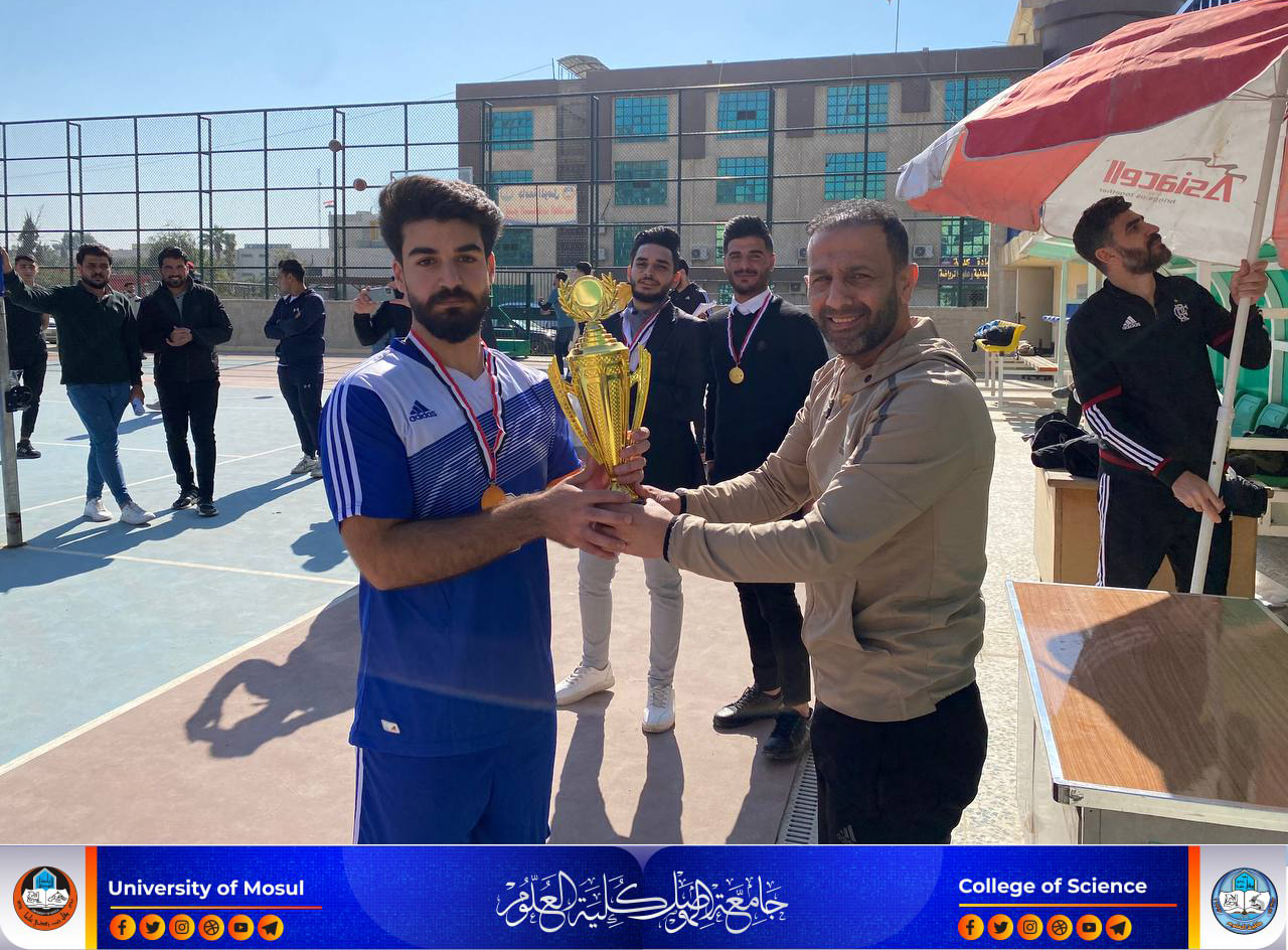 برعاية السيد رئيس جامعة الموصل الأستاذ الدكتور قصي كمال الدين الأحمدي المحترم وإشراف السيدة عميد كلية العلوم الأستاذ الدكتورة هيام عادل إبراهيم المحترمة أقامت شعبة النشاطات الطلابية في كلية العلوم يوم الأحد الموافق 11 شباط 2024 المباراة النهائية في كرة الطائرة والتي انتهت بفوز فريق قسم الكيمياء على فريق قسم علوم الأرض بمجموعتين لواحدة في مباراة حماسية من الجانبين وفي نهاية المباراة تم توزيع الجوائز وتكريم طلبتنا الأعزاء ومن جهتها قدمت السيدة العميدة شكرها لجميع القائمين على هذه النشاطات لطلبتنا متمنية لهم مزيدا من التقدم والنجاح.