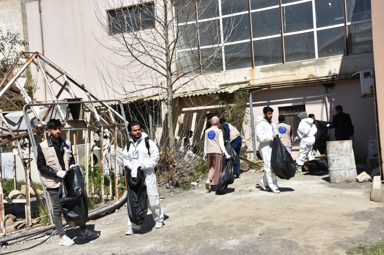 حملة تنظيف واسعة لأقسام كلية العلوم وحدائق المركز الطلابي