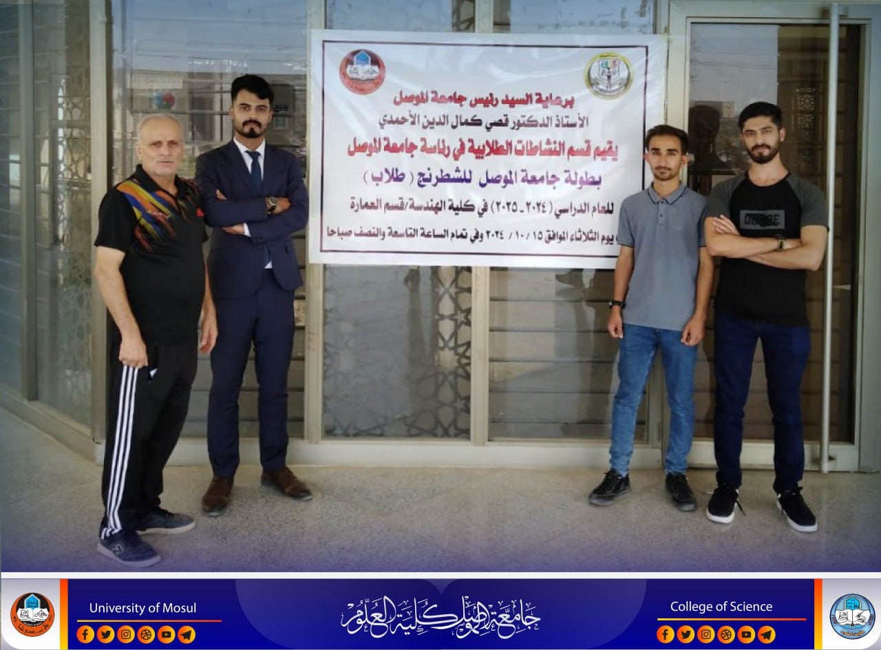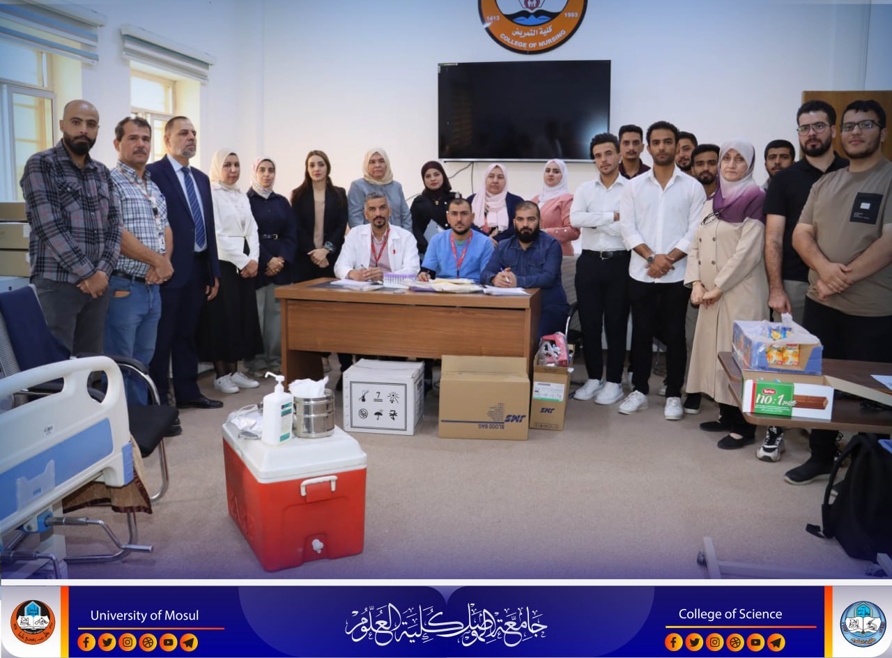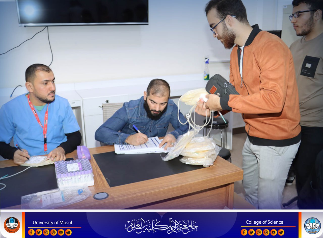 ضمن نشاطات كلية العلوم وانطلاقاً من توجيهات السيد رئيس جامعة الموصل الأستاذ الدكتور وحيد محمود الابراهيمي المحترم وبإشراف السيدة عميد كلية العلوم الأستاذ الدكتورة هيام عادل الطائي المحترمة وبالتعاون مع دائرة الرعاية العلمية / وزارة الشباب .