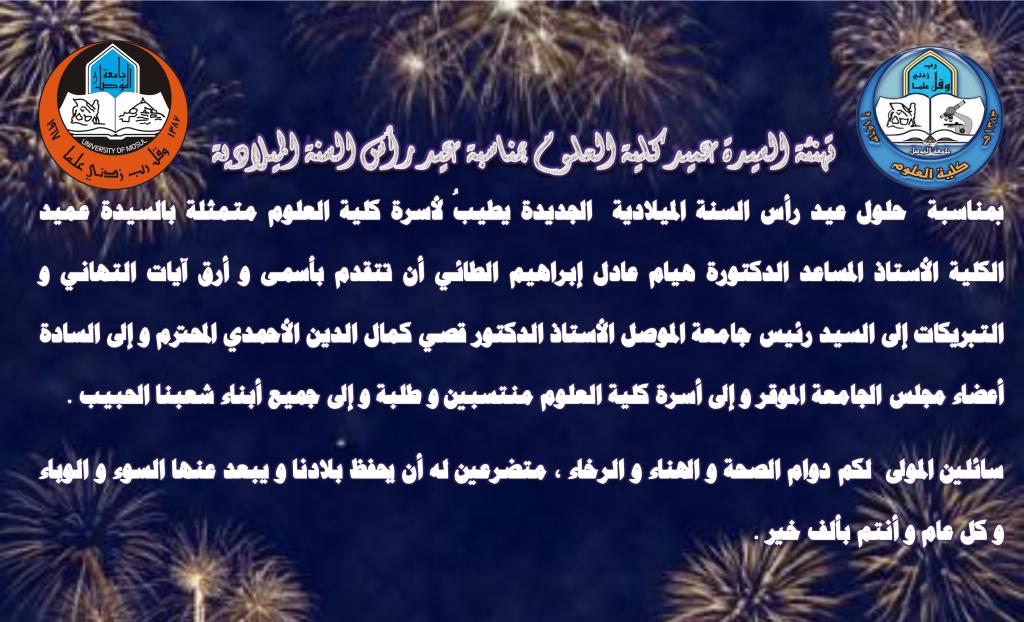برعاية السيد رئيس جامعة الموصل الأستاذ الدكتور قصي كمال الدين الأحمدي و إشراف السيدة عميد كلية العلوم الأستاذ المساعد الدكتورة هيام عادل إبراهيم الطائي ، أقامت وحدة النشاطات الطلابية في كلية العلوم بطولتها الأولى لكرة المنضدة لمنتسبي الكلية يوم الأربعاء الموافق 2020/12/30 في قسم علوم الحياة .كان ترتيب الفائزين الثلاثة في البطولة كالآتي :1- المركز الأول السيد غدير سالم من قسم الفيزياء .2- المركز الثاني السيد محمد عبدالغني من قسم علوم الحياة .3- المركز الثالث الدكتور محمود .
