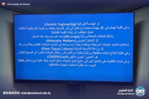 نظّم قسم علوم الحياة / كلية العلوم، ضمن نشاطات وحدة التعليم المستمر بالتعاون مع قسم الدراسات والتخطيط / وحدة التنمية المستدامة ، ورشةَ عمل بعنوان “التكنولوجيا الحيوية النباتية ودورها في الأمن الغذائي المستدام” يوم الاثنين الموافق ١٧ تشرين الثاني ٢٠٢٥.