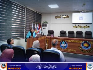 قدّمت الورشة الأستاذ المساعد الدكتورة رنا عبدالإله محمود الحيالي، حيث تناولت مفهوم الجيولوجيا الخضراء، وهو توجّه علمي حديث يهدف إلى مواءمة الأنشطة الجيولوجية مع متطلبات البيئة، من خلال تقليل الآثار السلبية لاستخدام الموارد الطبيعية كالتعدين، الحفر، استخراج المياه الجوفية والتنقيب عن النفط.