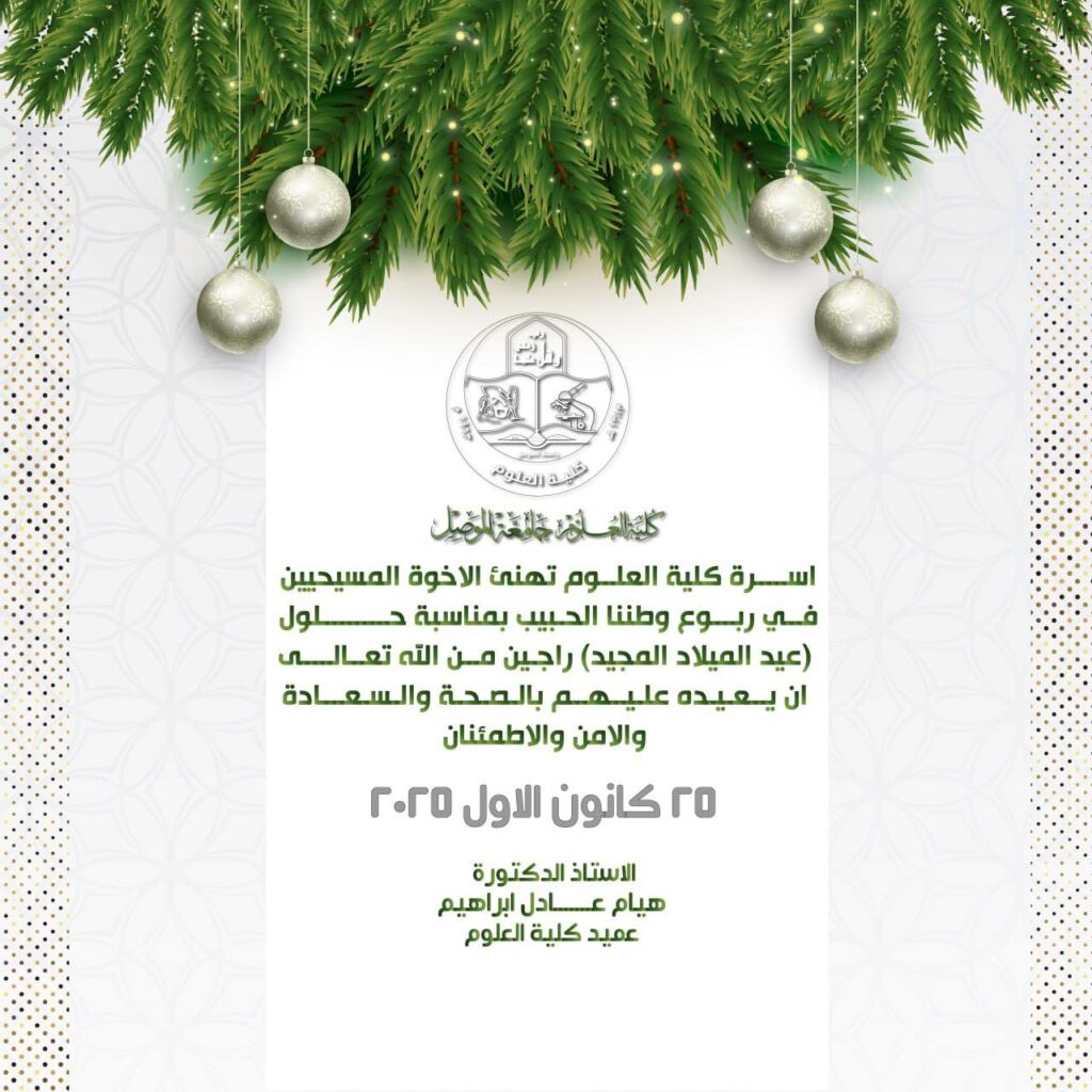 تهنئة عمادة كلية العلوم بمناسبة حلول عيد الميلاد المجيد