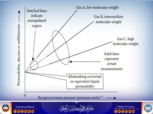 كما تناولت الورشة أنواع المسامية والعوامل المؤثرة فيها، إلى جانب تقديم شرح موسّع حول النفاذية وقانون دارسي (Darcy’s Law) المستخدم في حساب نفاذية الموائع. وتم التطرق كذلك إلى الطرق المختبرية المستخدمة لحساب المسامية والنفاذية، إضافةً إلى شرح اشتقاق معادلة دارسي وبيان تأثير ظاهرة كلينكينبيرغ (Klinkenberg Effect) عند استخدام الغازات في قياسات النفاذية.