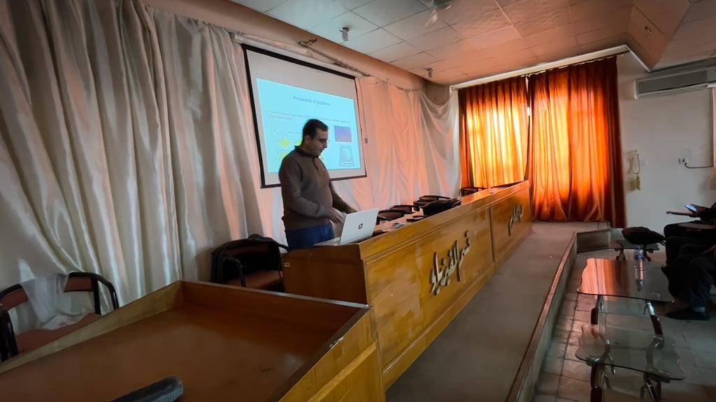 برعاية السيدة عميد كلية العلوم الأستاذ المساعد الدكتورة هيام عادل الطائي المحترمة و إشراف السيد رئيس قسم الفيزياء الدكتور مازن أحمد عبد غزال المحترم ، أقيمت يوم الثلاثاء الموافق 21 كانون الأول 2021 ورشة علمية القاها الدكتور أحمد منير سهيل بعنوان :” Graphene biosensors as a future diagnostic approach for COVID-19 “تضمنت الورشة شرحاً وافياً عن استخدام مادة الكرافين في عملية تصنيع البيوسنسر لغرض اجراء الكشف عن فايروس كرونا ، كذلك تم التطرق الى طرق ومراحل تحضير البيوسنسر. بعدها مقارنة طريقة الكشف عن كرونا باستخدام كرافين بيوسنسر مع الطرق الأخرى .حضرها عدداً من تدريسيي الكلية ، متمنين لتدريسيي كليتنا المزيد من التقدم العلمي خدمةً لكليتنا العريقة .