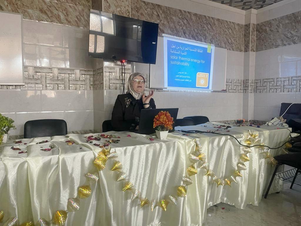 برعاية السيد رئيس جامعة الموصل الأستاذ الدكتور قصي كمال الدين الأحمدي وبإشراف السيدة عميد كلية العلوم الأستاذ الدكتورة هيام عادل إبراهيم .أقام قسم الطاقات الجديدة والمتجددة في كليتنا ورشة عمل بعنوان ” الطاقة الشمسية الحرارية والتنمية المستدامة ‟ وذلك صباح يوم الخميس الموافق 27 تشرين الأول 2022 على القاعة الالكترونية للقسم حضرها السيد رئيس القسم و جمع من التدريسيين .القى محاضرة الورشة المدرس الدكتورة غادة غانم يونس حيث تناولت الورشة مفهوم التنمية المستدامة واطارها الفكري وارتباطها بالطاقات المتجددة وتم استعراض تقنيات الطاقة الشمسية الحرارية واستخداماتها للأغراض المنزلية والصناعية وعلى رأسها تقنية السخان الشمسي وبيان معايير اختياره وتقييم جودته.شعبة الإعلام والعلاقات العامةالجمعة 28 تشرين الأول 2022