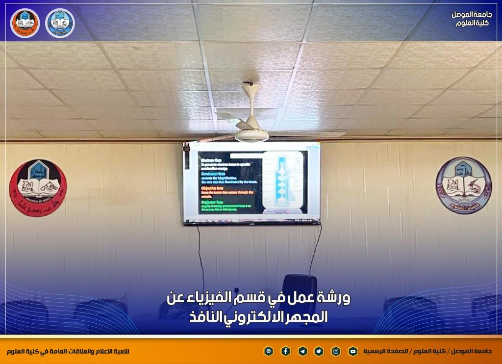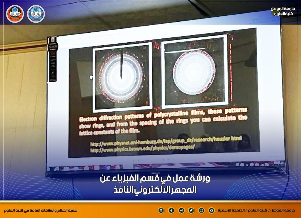 اقيمت صباح يوم الأحد الموافق 2 تشرين الأول 2022 ورشة عمل في قسم الفيزياء بكليتنا عن ” المجهر الإلكتروني النافذ تركيبه وتطبيقاته و أسسه النظرية ” .القى محاضراتها الأستاذ المساعد الدكتور عبدالله إدريس و الأستاذ المساعد آلاء عبد الحكيم.تناولت الورشة أهم الأسس النظرية والمفاهيم الفيزيائية التي ساهمت باختراع وتطوير المجهر الإلكتروني النافذ والتعريف بمكوناته من مقطع الحزمة الإلكترونية ولغاية الحصول على الصورة ، فضلاً عن التعريف بأنماط التشغيل وكيفية تجهيز العينات.حضر الورشة عدد من تدريسي و طلبة الدراسات العليا و الأولية في القسم .تمنياتنا لمنتسبي الكلية بالعطاء الدائمشعبة الإعلام والعلاقات العامةالأحد 2 تشرين الأول 2022