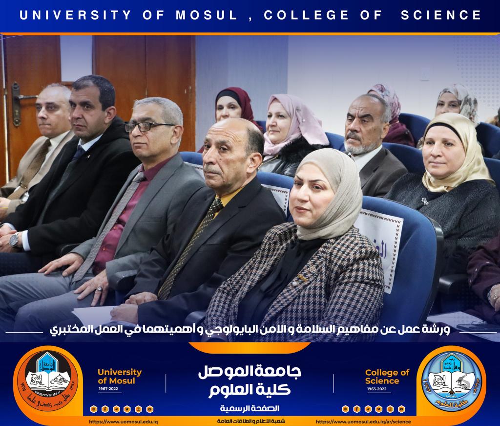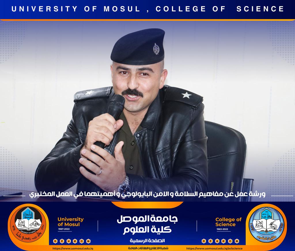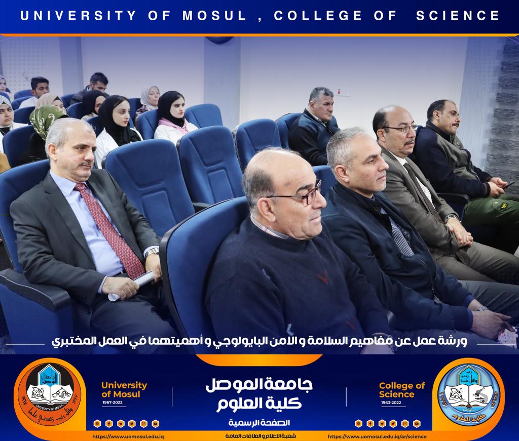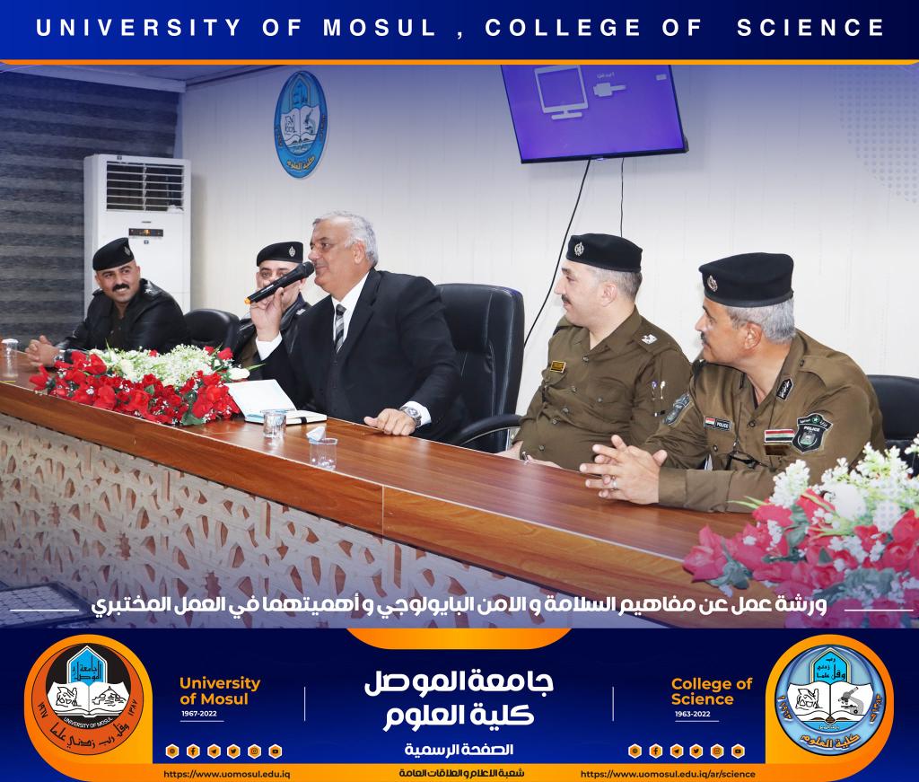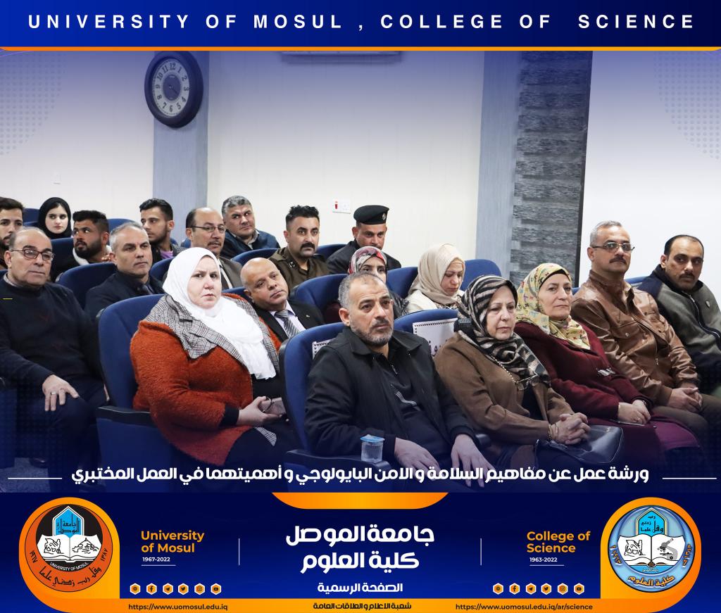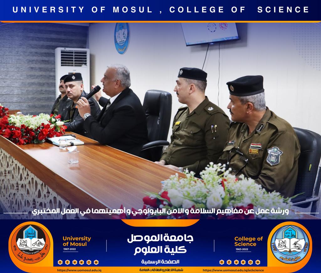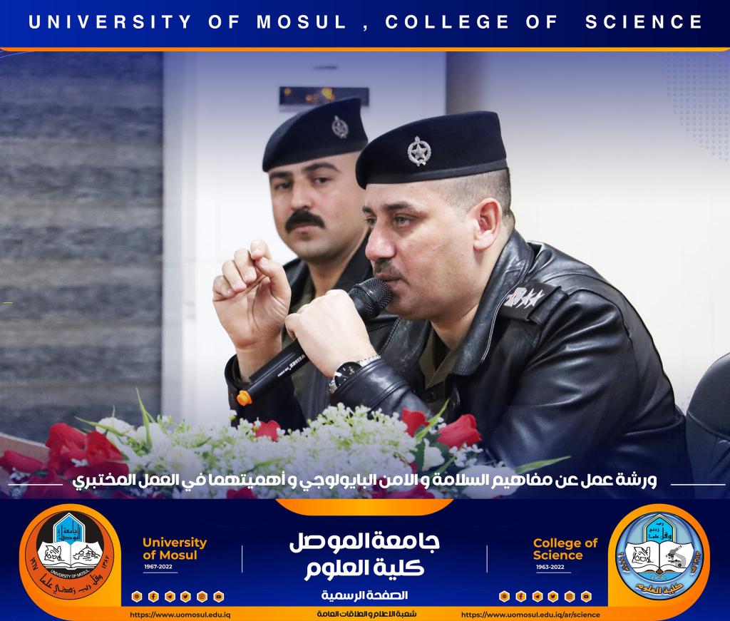 برعاية كريمة من لدن السيد رئيس جامعة الموصل الأستاذ الدكتور قصي كمال الدين الأحمدي وبإشراف و حضور السيدة عميد كلية العلوم الأستاذ الدكتورة هيام عادل إبراهيم وتأكيداً على دور الجامعة في التعاون مع مؤسسات و دوائر الدولة المختلفة ، أقامت الكلية و بالتعاون مع مديرية الدفاع المدني في مدينة الموصل و فريق CBRN التابع لرئاسة جامعة الموصل ورشة عمل بعنوان ” مفاهيم السلامة والأمن البايولوجي و أهميتهما في العمل المختبري” صباح يوم الإثنين الموافق 12 كانون الأول 2022 في رحاب قسم علوم الحياة.حضر الورشة السادة أعضاء مجلس الكلية وجمع غفير من تدريسي و طلبة الكلية.القى محاضرات الورشة السيد سفيان إدريس محمد مسؤول شعبة الدفاع المدني في جامعة الموصل و العقيد الفيزياوي سعد حمادي حسين مدير الإعلام في مديرية الدفاع المدني في نينوى ، والرائد محمد سعدي جاسم مسؤول شعبة ال CBRN فيها ، والملازم عباس حسن قاسم ( أحد خريجي قسم الكيمياء في كليتنا ) ضابط شعبة الوقاية والسلامة الصناعية في المديرية.هدفت الورشة الى التعريف بأهم مفاهيم السلامة المهنية في الأماكن العامة و المختبرات العلمية و المنازل و كيفية التعامل مع المواد الكيميائية إضافة الى آلية معالجة الأخطار الناجمة عنها .كما تطرقت الى أبرز التفاعلات الناجمة عن تلك المخاطر و سبل الحيلولة دون حدوثها ، تناولت الورشة أيضاً أنواع الحروق و المطافئ المناسبة لكل نوع و آلية استخدام هذه المطافئ ، و ضرورة التوعية المستمرة للمجتمع و العاملين في المؤسسات الحكومية بمثل هذه المخاطر و آلية ادارتها و الوقاية منها ، مع التعريف والتذكير برقم الطوارئ للدفاع المدني (115) .اختتمت بالورشة بمناقشة مستفيضة مع السادة التدريسين و الطلبة الحضور تضمنت الاجابة عن أبرز تساؤلاتهم.جدير بالذكر أن هذه الورشة تأتي مقدمة لممارسة عملية ستجري يوم غدٍ الثلاثاء الموافق 13 كانون الأول 2022 في مختبرات قسم الكيمياء تهدف الى ترسيخ تلك المفاهيم في أذهان الجميع.شعبة الإعلام والعلاقات العامةالاثنين 12 كانون الأول 2022