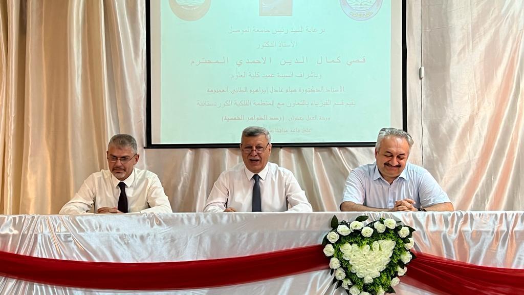 برعاية السيد رئيس جامعة الموصل الأستاذ الدكتور قصي كمال الدين الأحمدي وبأشراف وحضور السيدة عميد كلية العلوم الأستاذ الدكتورة هيام عادل ابراهيم ، أقيمت في قسم الفيزياء وبالتعاون مع المنظمة الفلكية الكوردستانية يوم الثلاثاء الموافق ٣١ من أيار ٢٠٢٢ ورشة عمل ضمن نشاطات التعليم المستمر بعنوان ” رصد الظواهر الشمسية” .القى أولى محاضراتها الدكتور عماد أحمد حسين عن الشمس ( نشأتها – تطورها – فناءها وظواهرها ) كذلك ولادة الشمس من السديم وتطورها والتركيب الداخلي للشمس والغلاف الجوي الشمسي وتصنيفها ونهايتها إلى عملاق أحمر ثم إلى قزم أبيض ، وتناولت أيضاً أهم الظواهر التي تحدث على سطحها كالبقع الشمسية والرياح الشمسية .أما المحاضرة الثانية التي ألقاها السيد ازي جتو حسن رئيس المنظمة الفلكية الكوردستانية كانت بعنوان ” تقنيات الرصد الفلكي ” تناول بها المراصد الأرضية أنواعها وتكوينها وطرق الرصد بها والاختلاف فيما بينها وكذلك المراصد الفضائية أنواعها والاقمار الصناعية التي تستخدم للرصد الشمس وكيفية رصدها الظواهر التي تحدث على سطحها وكذلك تناول السلامة عند عملية الرصد .وكان المنهاج الأخير للدورة هو رصد الظواهر التي تحدث على سطح الشمس في باحة قسم الفيزياء بواسطة التلسكوبات وقد رصدت البقع الشمسية وكذلك الوهجات الشمسية .وقد قدمت السيدة العميد كتاب شكر الى الراصد الفلكي السيد ازي جتو حسن متمنيةً أن يدوم التعاون العلمي والأكاديمي بين الجانبين .حضر الورشة عدد من الفلكيين المعنيين في هذا المجال من محافظة أربيل بالإضافة الى أساتذة وطلبة الدراسات العليا .