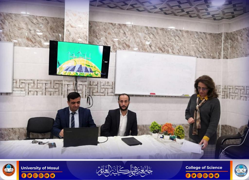 برعاية السيد رئيس جامعة الموصل الأستاذ الدكتور قصي كمال الدين الأحمدي وبإشراف السيدة عميد كلية العلوم الأستاذ الدكتورة هيام عادل إبراهيم أقام قسم الطاقات الجديدة والمتجددة في كليتنا ورشة تعليم مستمر تحت عنوان: ” محطات الطاقة المتجددة ‟ صباح يوم الثلاثاء 7 آذار 2023.القى محاضرات الورشة كل من الأستاذ المساعد الدكتور عاصم أحمد عيسى و المدرس مصطفى حسين إبراهيم وحضرها جمع من التدريسيين والموظفين والطلبة.تناولت الورشة التعريف بآليات عمل محطات الطاقة المتجددة وأنواعها المختلفة وتأثيراتها التقنية على الشبكة الكهربائية الوطنية ومخلفاتها البيئية على الطبيعة وفي ختام الورشة قدمت توصيات بخصوص امكانات نصب وتشغيل أنواع منها في بلدنا والفوائد المتوقعة منها في تحسين رفاهية المجتمع.شعبة الاعلام والعلاقات العامةالأربعاء 8 آذار 2023