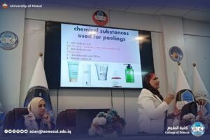 وبإشراف السَّيدة عميد كلية العلوم الأستاذ الدكتور هيام عادل إبراهيم المُحترمة ومتابعة السيد رئيس قسم الكيمياء الأستاذ الدكتور سالم جاسم محمد المحترم، نظّم قسم الكيمياء ضمن نشاطات وحدة التعليم المستمر، ورشة عمل بعنوان “كيمياء عمليات التجميل وتطبيقاتها” يوم الاثنين الموافق 13 تشرين الأول 2025.