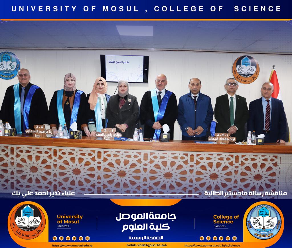 admin_omar2022-12-13T00:00:00+03:00ناقش قسم علوم الحياة في كلية العلوم بجامعة الموصل رسالة الماجستير الموسومة " قياس مستوى بعض المعايير المناعية لتقييم فعالية الجهاز المناعي للأصحاء في محافظة نينوى " يوم الثلاثاء الموافق 13 كانون الأول 2022.حضر جانباً منها السيدة عميد الكلية الأستاذ الدكتورة هيام عادل إبراهيم والسادة معاوني العميد والسيد رئيس القسم وعدد من تدريسي القسم.تناولت الدراسة التي تقدمت بها الطالبة ( علياء نذير أحمد بك العباسي ) فرع الأحياء المجهرية عدد من المحاور منها :دراسة تأثير فيتامين D وفيتامين C وكل من الزنك والسلينيوم على العوامل المناعية المدروسة ، و دراسة تأثير بعض العادات والسلوك اليومي للأشخاص قيد الدراسة على بعض العوامل [إقرأ المزيد]