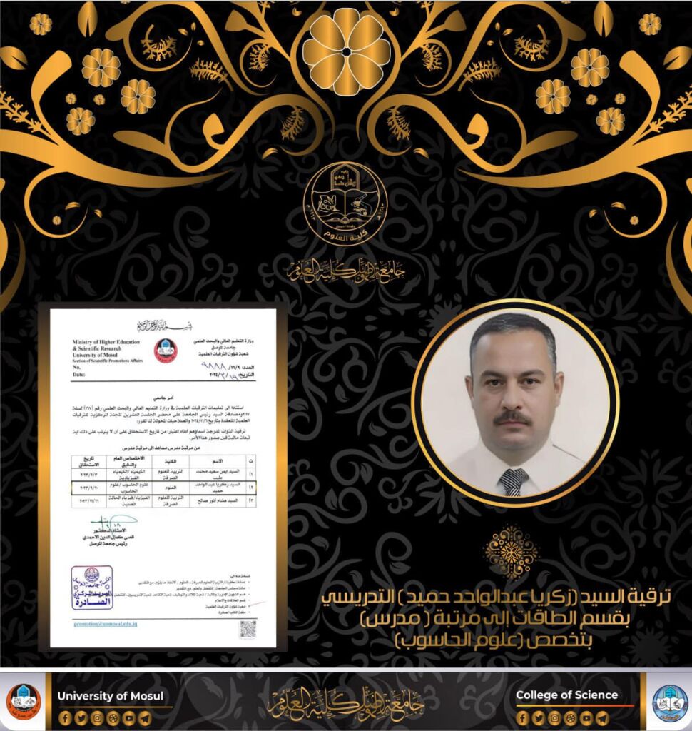 يطيب لأسرة كلية العلوم ممثلة بالسيدة العميد الأستاذ الدكتورة هيام عادل إبراهيم أن تتقدم بأزكى وأسمى آيات التهاني والتبريكات الى السيد رئيس جامعة الموصل الأستاذ الدكتور قصي كمال الدين الأحمدي ومجلس الجامعة الموقر، كما نتقدم بأجمل التهاني القلبية المشفوعة بأطيب وأسمى التبريكات للشعب العراقي عامة ، وأبناء شعبنا الكردي على وجه الخصوص ، راجين المولى عز وجل أن يحفظ بلدنا العراق بلد الخير وموطن الحضارات ، و أن يعم في ربوعه الأمن والأمان والتطور والازدهار، وأن ينعم أهله بالرخاء و الصحة والعافية.
