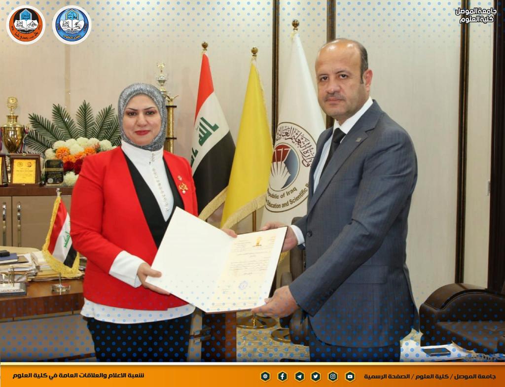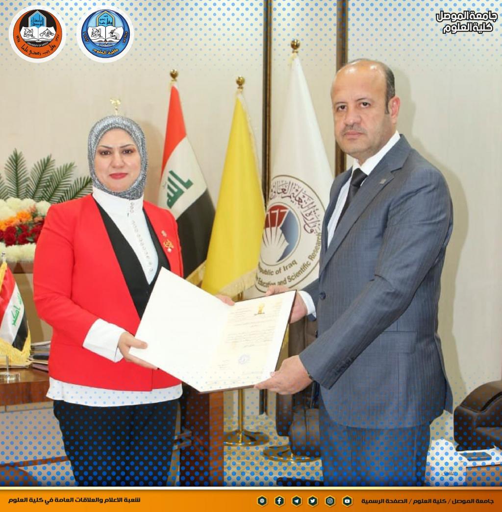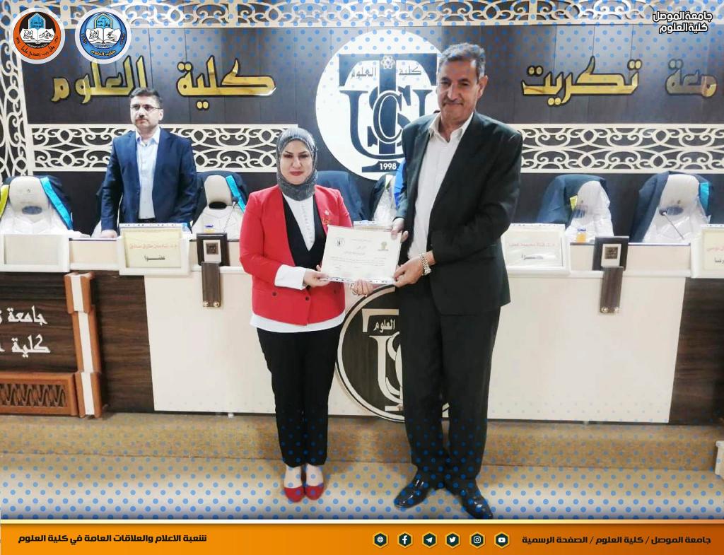 السيدة عميد كلية العلوم تتلقى تكريماَ من السيد رئيس جامعة تكريت