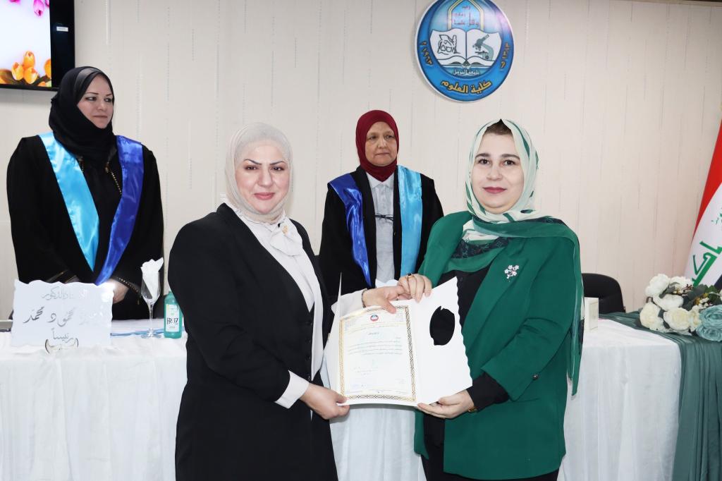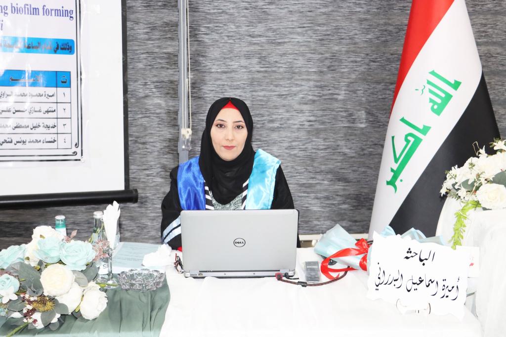 ناقش قسم علوم الحياة بكلية العلوم في جامعة الموصل يوم الأحد الموافق 6 تشرين الثاني 2022 رسالة الماجستير الموسومة :(Identification of an auto inducer synthase encoding gene among biofilm formingclinical isolates of Acinetobacter baumannii).حضر جانباً منها السيدة عميد الكلية الأستاذ الدكتورة هيام عادل إبراهيم والسيد المعاون العلمي والسيد رئيس القسم وعدد من تدريسي الكلية.تناولت الدراسة التي تقدمت بها الطالبة ( أميرة إسماعيل أحمد البدراني ) من فرع الأحياء المجهرية عدد من المحاور منها جمع العينات المرضية من مصادر سريرية مختلفة في مستشفيات مدينة الموصل وكذلك عزل وتشخيص عزلات Acinetobacter baumannii.تم دراسة قابلية عزلات A. baumannii على تكوين الأغشية الحيوية وتحديد مقاومتها للمضادات الحيوية المستخدمة . وتشخيص، وتقييم التباين في نسخ الجين المرتبط باستشعار النصاب an auto inducer synthase ( abaI gene ) ، وجينات مقاومة المضادات الحيوية ( efflux pumps adeA gene و blaOXA-51 gene) في اطوار نمو A. baumannii.هدفت الدراسة إلى دراسة فعالية جزيئات استشعار النصاب Lactone (AHL) Acyl –Homoserine كميا ونوعيا باستخدام سلالة كاشفة منماة بتراكيز مختلفة من رائق نمو عزلات A. baumannii وكذلك تحديد وجود وكمية الجين المشفر ل auto inducer synthase في عزلات A.baumannii .تراس لجنة المناقشة الأستاذ الدكتورة أميرة محمود محمد الراوي وعضوية كل من الاستاذ الدكتورة منتهى غازي حسن علي والأستاذ الدكتورة خديجة خليل مصطفى محمد من جامعة صلاح الدين-أربيل وباشراف الأستاذ المساعد الدكتورة خنساء محمد يونس فتحي.شعبة الإعلام و العلاقات العامةالإثنين 7 تشرين الثاني 2022