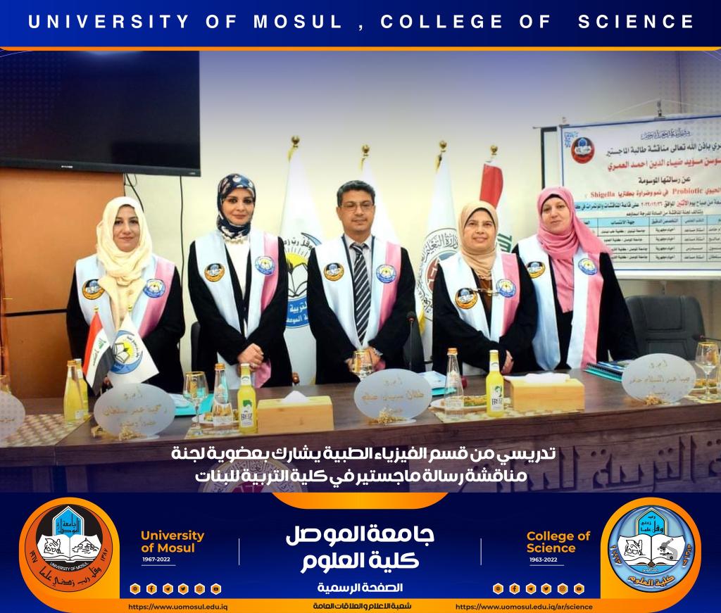 تدريسي من كليتنا يشارك بعضوية لجنة مناقشة رسالة ماجستير في كلية التربية للبنات