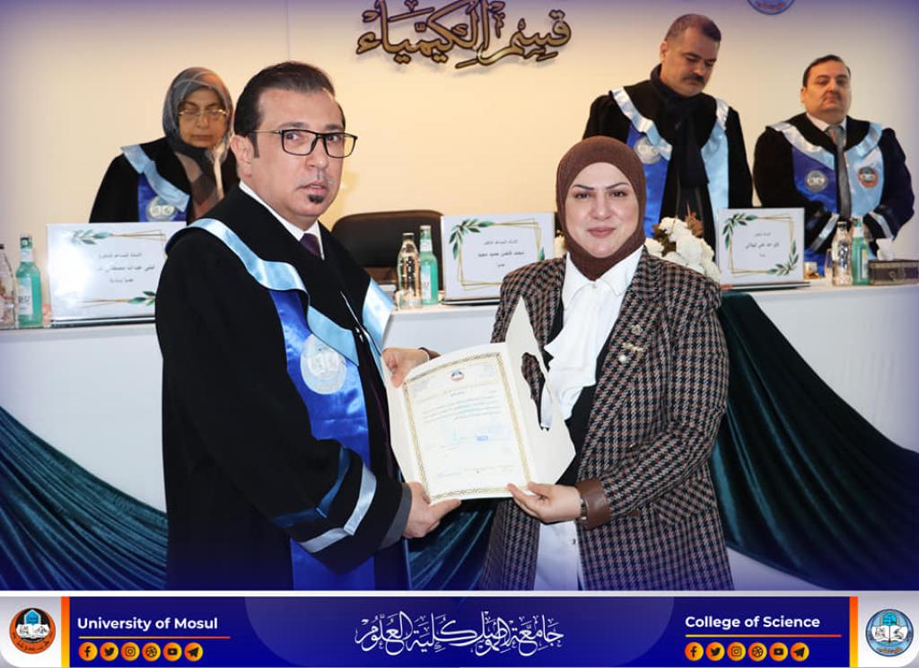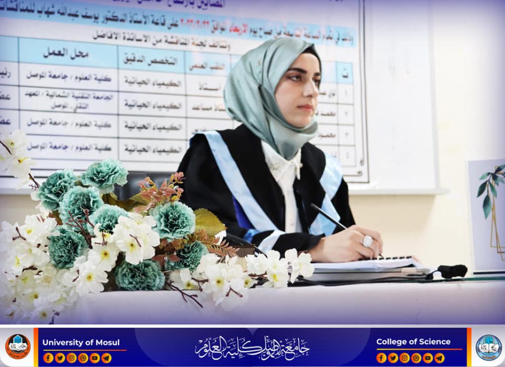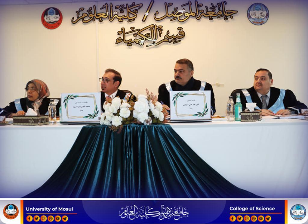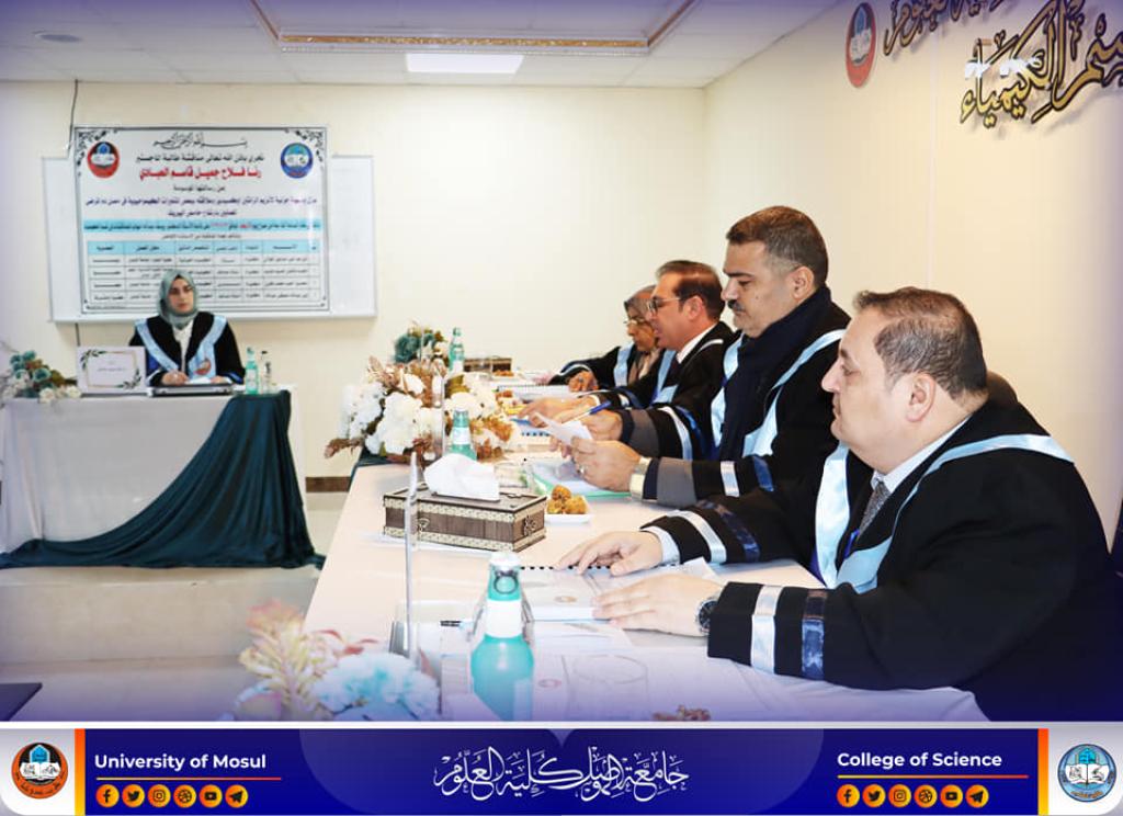 ناقش قسم الكيمياء في كلية العلوم بجامعة الموصل رسالة ماجستير بعنوان ” عزل وتقنية جزئية لانزيم الزانثين اوكسيديز وعلاقته ببعض المتغيرات الكيموحيوية في مصل دم المرضى المصابين بارتفاع حامض اليوريك ” يوم الاربعاء الموافق 22 شباط 2023.حضر جانبا منها السيدة عميد الكلية الاستاذ الدكتورة هيام عادل ابراهيم و معاونيها للشؤون العلمية و الادارية و السيد رئيس القسم وعدد من تدريسي الكلية.تناولت الرسالة التي تقدمت بها الطالبة (رنا فلاح جميل قاسم) في فرع الكيمياء الحياتية جزأين:الأول تقدير تركيز حامض اليوريك وقياس فعاليَّة إِنزيم الزانثين أُوكسيديز في مصل دم المرضى المصابين بارتفاع حامض اليوريك وعلاقتهما ببعض المتغيرات الكيموحيوية المقاسة الَّتي تضمنت (الفوسفاتيز القاعدي، حامض السياليك، المالوندايالديهايد، الكلوتاثايون، فيتامين D3، C، E، الأَلبومين، اليوريا، الكرياتنين، الكالسيوم والفسفور) .أظهرت النتائج ارتفاعاً معنوياً في مستوى كل من حامض اليوريك، فعاليَّة إِنزيم الزانثين أُوكسيديز، حامض السياليك، المالوندايالديهايد، اليوريا، الكرياتنين، فيتامين C، والفسفور، بينما أظهرت انخفاضاً معنوياً في مستوى كل من الكلوتاثايون، فيتامين D3، E.اما الجزء الثاني فشمل عزل وتنقية جزئية لإِنزيم الزانثين أُوكسيديز من مصل دم المرضى المصابين بارتفاع حامض اليوريك باستخدام مختلف التقنيات الحياتية والمتضمنة الترسيب بكبريتات الأَمونيوم، الديلزة، الترشيح الهلامي باستخدام السيفدكس (G-200) للراسب البروتيني.ترأس لجنة المناقشة الاستاذ الدكتور لؤي عبد علي الهلالي وعضوية كل من الاستاذ المساعد الدكتور محمد فاضل حميد من الجامعة التقنية الشمالية و المدرس الدكتور محمود احمد محمد فخري، وباشراف وعضوية الاستاذ المساعد الدكتورة ليلى عبد الله مصطفى.شعبة الإعلام والعلاقات العامةالأربعاء 22 شباط 2023