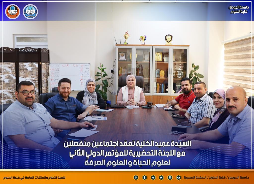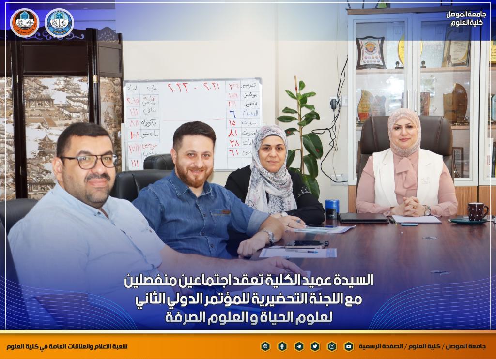 السيدة عميد الكلية تعقد اجتماعين منفصلين مع اللجنة التحضيرية للمؤتمر الدولي الثاني لعلوم الحياة والعلوم الصرفة