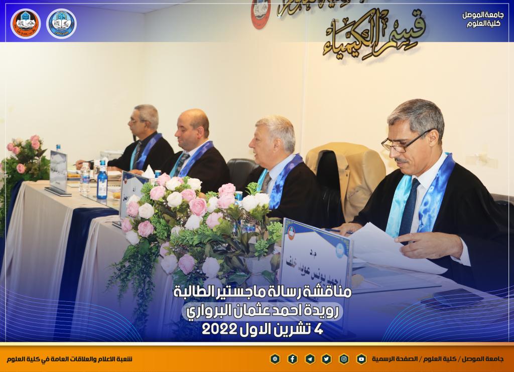 – ا. م. د. محمد صبحي حميد / معاون عميد كلية العلوم العلمي/ جامعة الموصل/ عضوا و مشرفا.