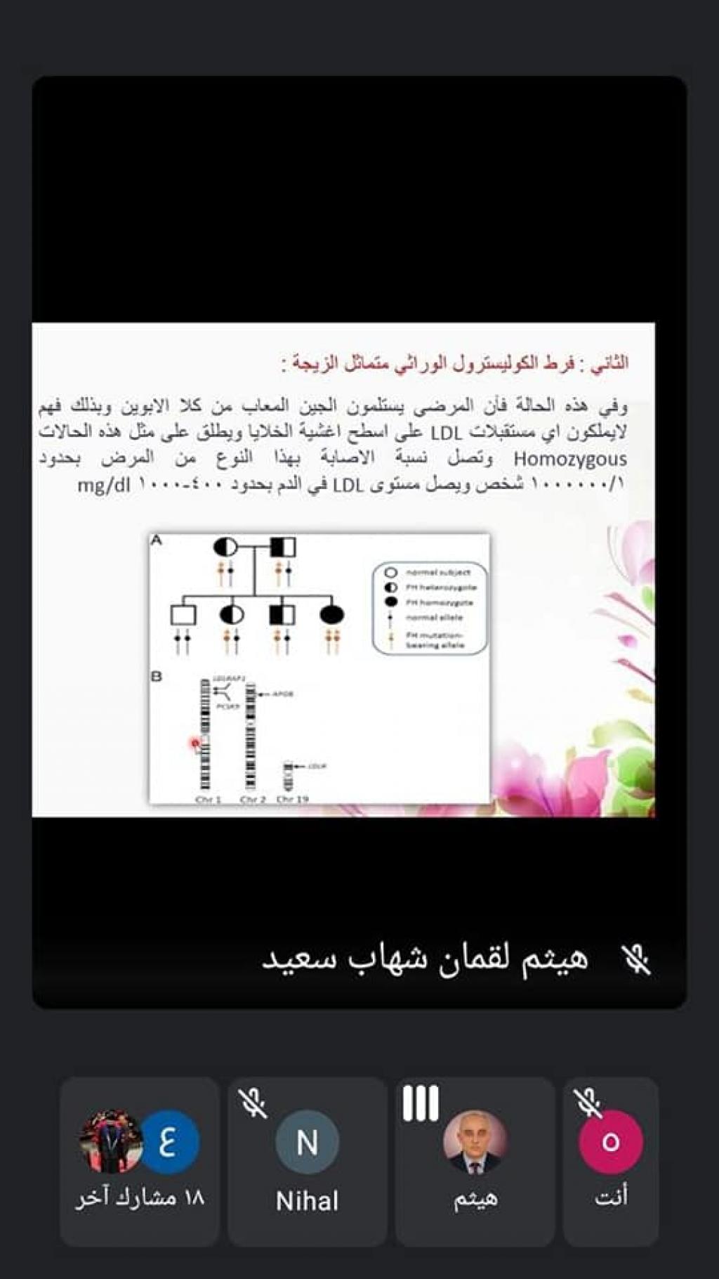 - المحور الثالث : أوضح الدكتور موفق خليل حسن أنواع الطفرات المسببة لفرط الكوليسترول الوراثي و كيفية انتقالها من الأبوين الى الأبناء .