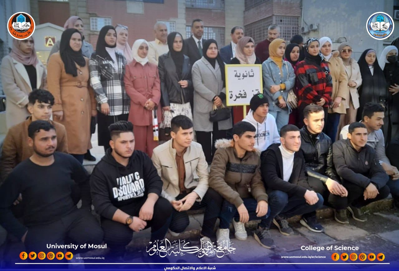 ibrahimgoyani2023-12-31T08:27:33+03:00تجسيداً لمبدأ التعاون المستمر بين جامعة الموصل ومديرية تربية نينوى ضمن النهج الذي وضعته الجامعة استناداً الى توجيهات السيد رئيس جامعة الموصل الأستاذ الدكتور قصي كمال الدين الأحمدي وبإشراف السيدة عميد كلية العلوم الأستاذ الدكتورة هيام عادل إبراهيم ومتابعة السادة رؤساء الأقسام. استقبل قسمي الفيزياء و الكيمياء في كليتنا يوم الخميس الموافق 28 من كانون الأول 2023 طلاب وطالبات ثانوية قز فخرة المختلطة من قضاء الحمدانية ، رافقهم في الزيارة الأستاذ خالد شاهين معاون مدير تربية نينوى وشملت الإطلاع على بعض المختبرات العلمية في الأقسام المذكورة ، حيث تم التطرق إلى شرح بعض التجارب العلمية في الفيزياء و الكيمياء و تعريف [إقرأ المزيد]