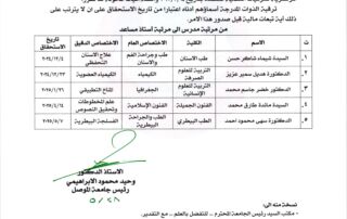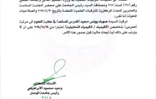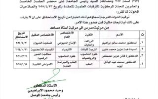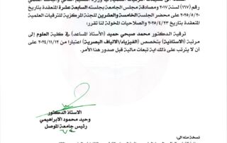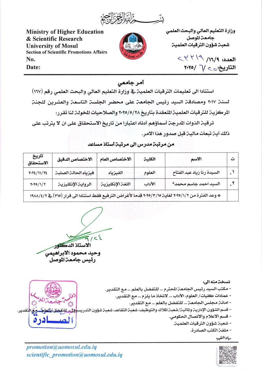 أمر جامعي لمرتبة أستاذ مساعد ج26 بتاريخ 2025/5/19