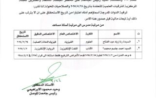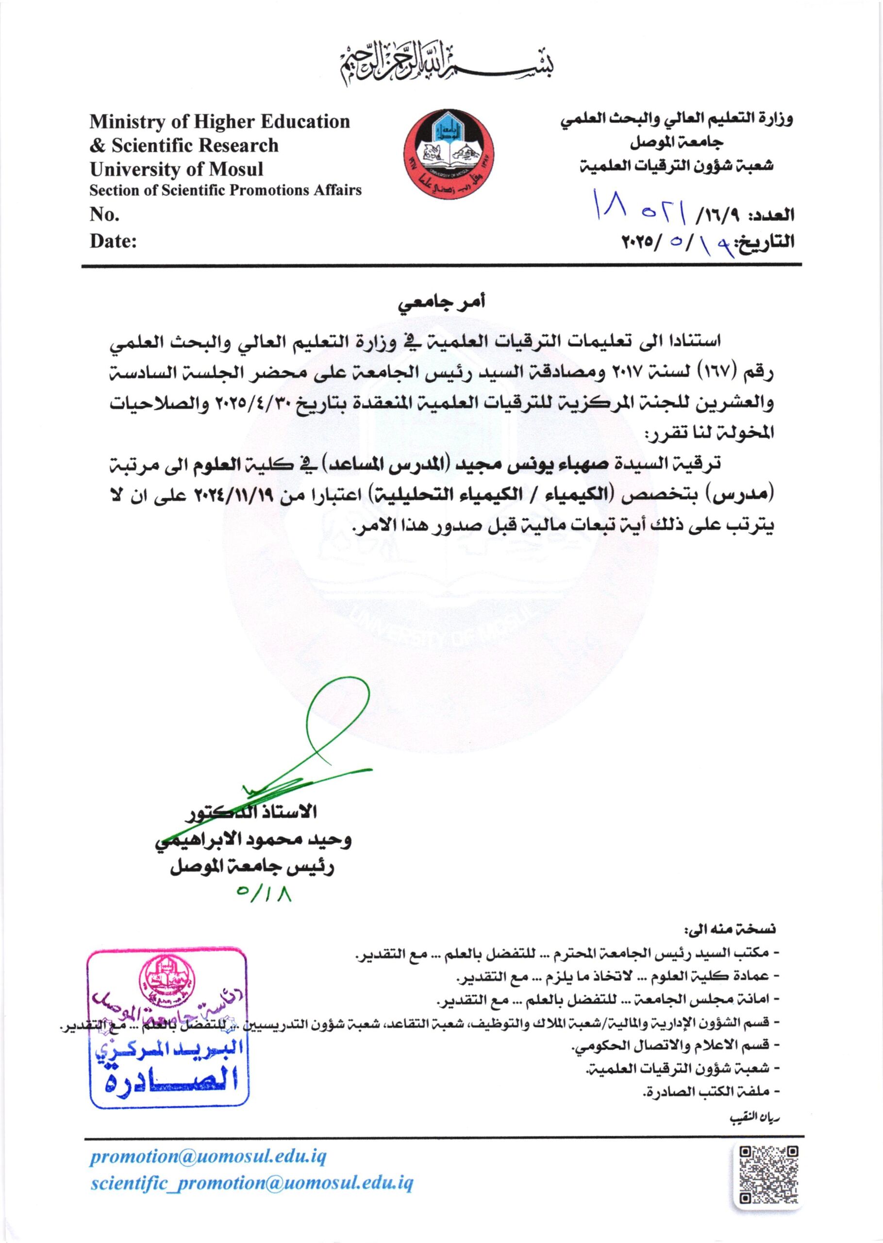 أمر جامعي لمرتبة مدرس ج26بتاريخ 2025/5/19